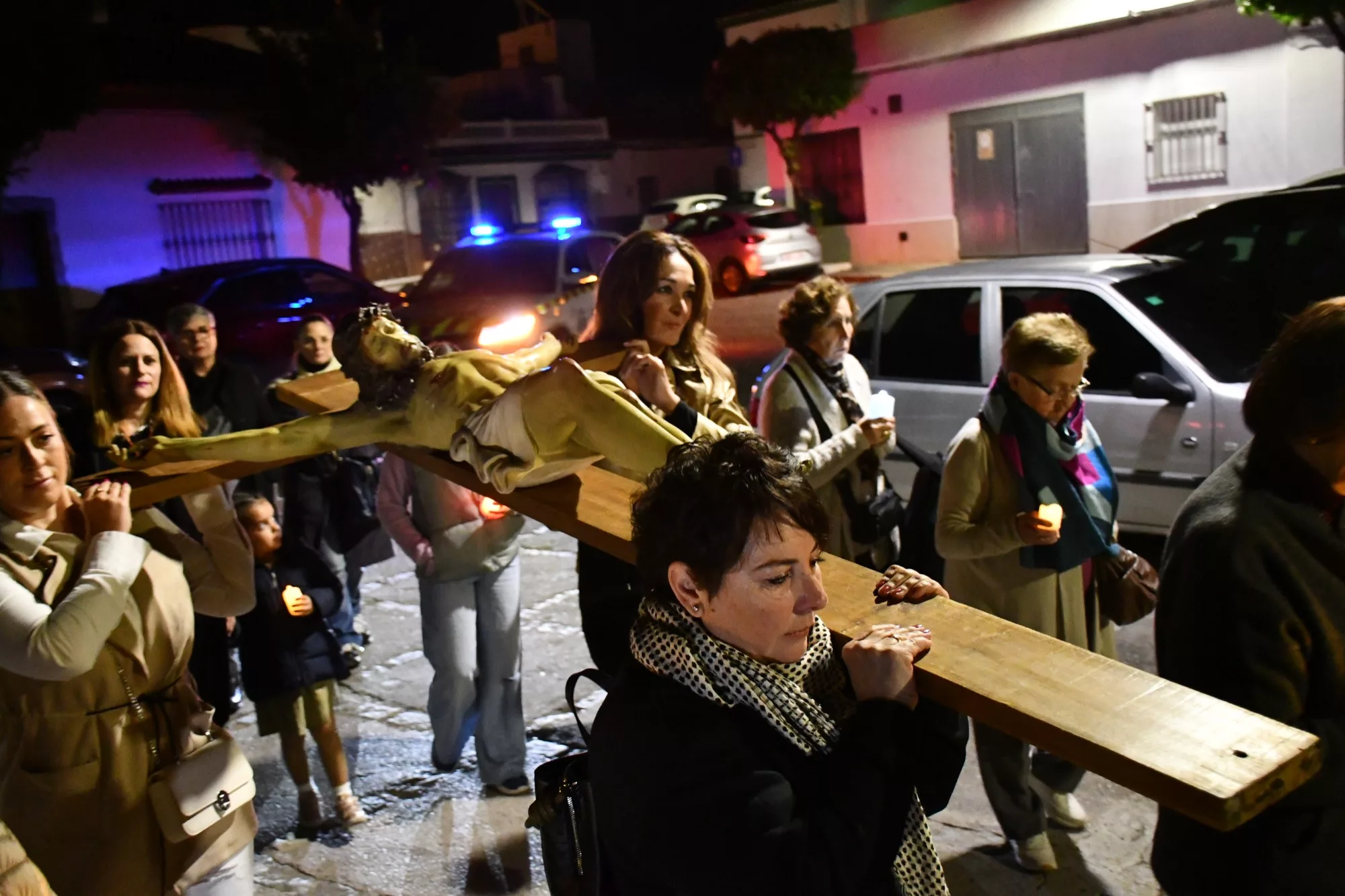Puente Mayorga ha celebrado su tradicional Vía Crucis por las principales calles de la barriada. Entre los asistentes se contó con la teniente de alcalde del Área de la Bahía, Mónica Córdoba.