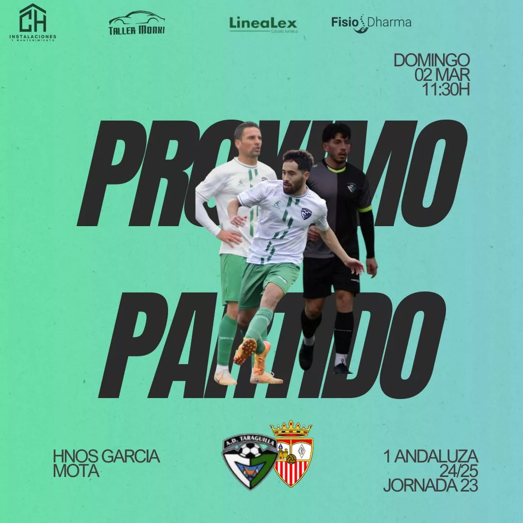 El Municipal Hermanos García Mota albergará este domingo, a partir de las 11.30 horas, el partido entre el equipo local, la AD Taraguilla, y el Racing Club Portuense. Se enfrentarán, por lo tanto, octavo contra primero de Primera Andaluza Cádiz.