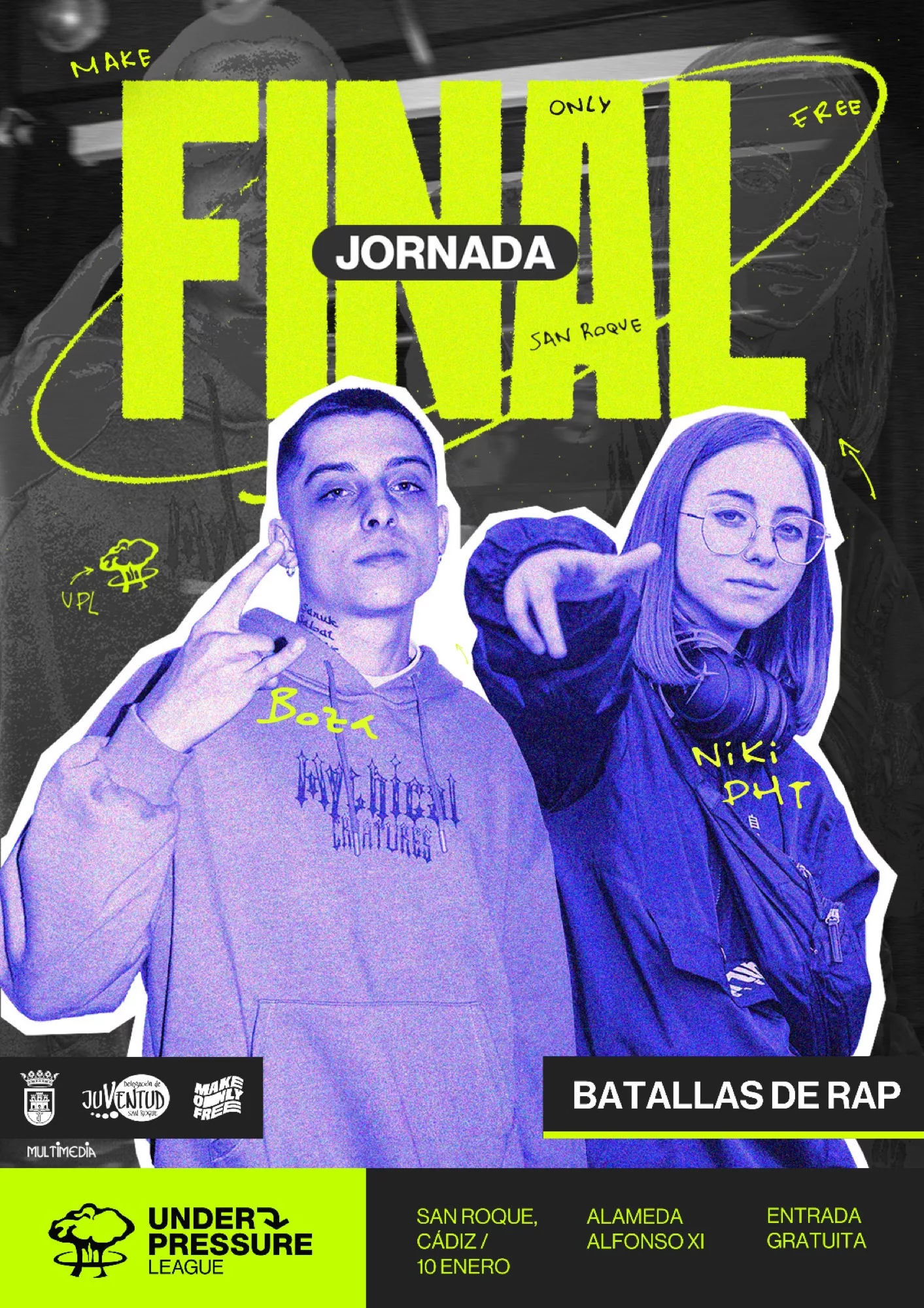 San Roque acogerá el próximo 10 de enero la final de la Under Pressure League, con una batalla de rap que enfrentará, entre otros, a Raw Boza, una joven promesa linense del trap local, y a la ya veterana Nikidmt.
