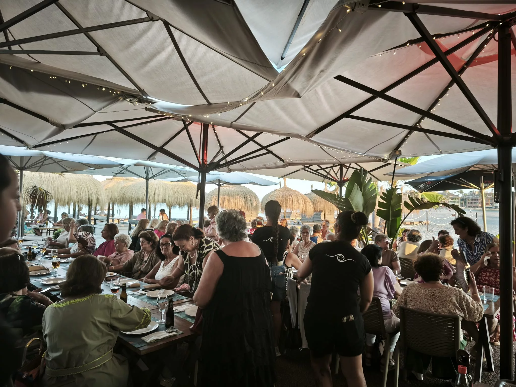 La Asociación de Mujeres La Charca de Torreguadiaro celebró este domingo la tradicional cena pre feria que realizan sus socias cada verano en el chiringuito Chambao, en la playa de la barriada. Esta cita es una de las clásicas actividades previas a las Fiestas del Carmen en Torreguadiaro.