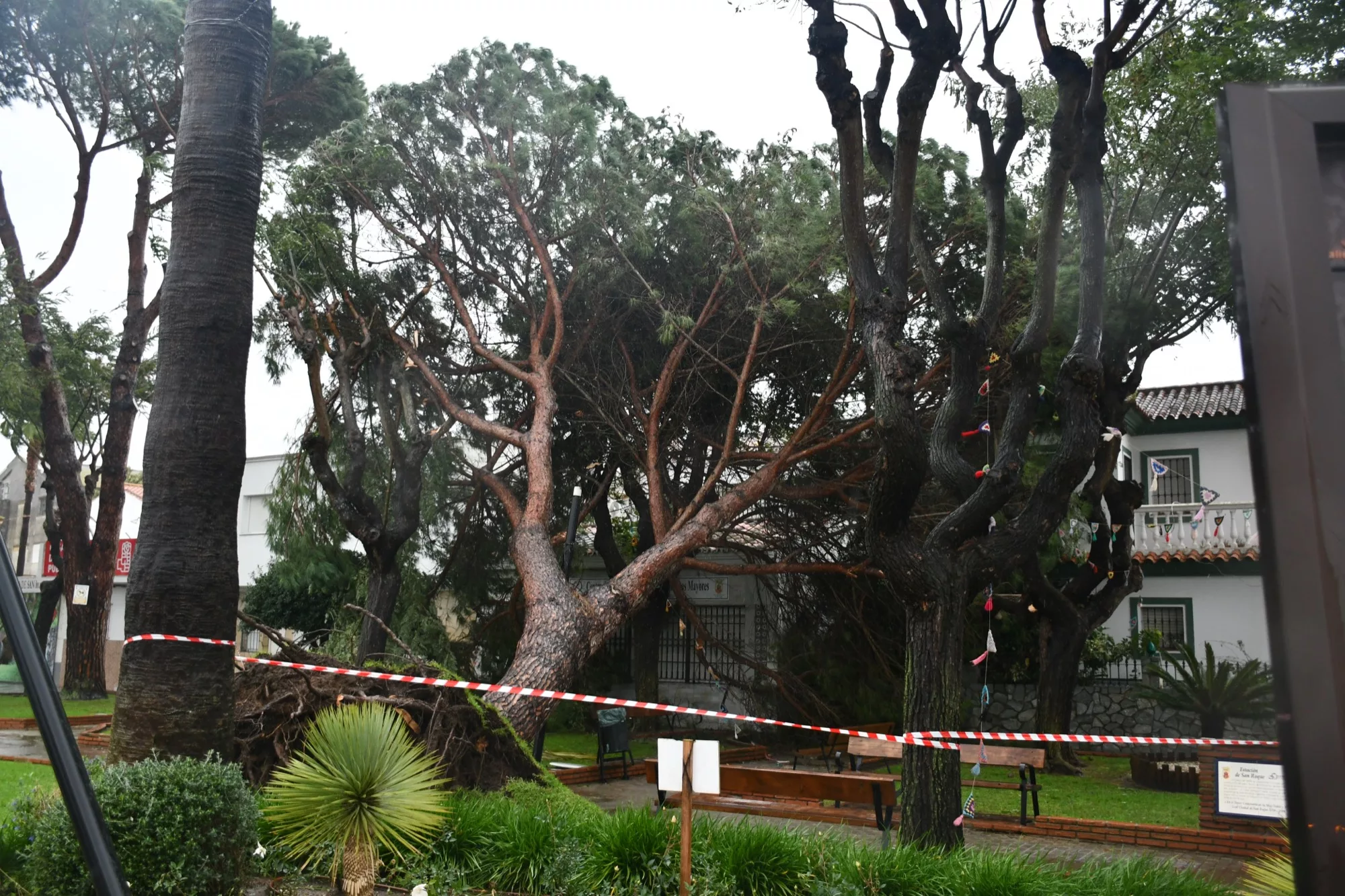 Caídas de árboles en diversos puntos, tales como la Plaza San Bernardo de la Estación de San Roque y en la zona de El Ejido y la barriada de Los Olivillos, en San Roque ciudad, donde en estos momentos el operativo especial del Ayuntamiento sigue trabajando para restaurar la normalidad en las zonas más afectadas del municipio en general.