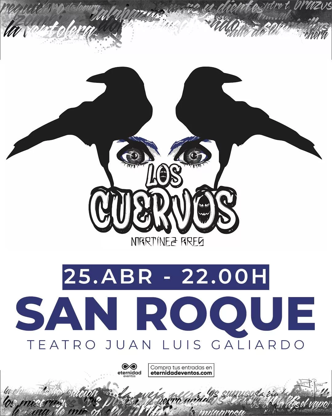 La comparsa antológica de Martínez Ares ‘Los cuervos’ estará en el Teatro Juan Luis Galiardo de San Roque el 25 de abril. El espectáculo, traído por Eternidad Eventos con la colaboración de la delegación de Cultura, está cosechando un gran éxito en todos los lugares donde llega.