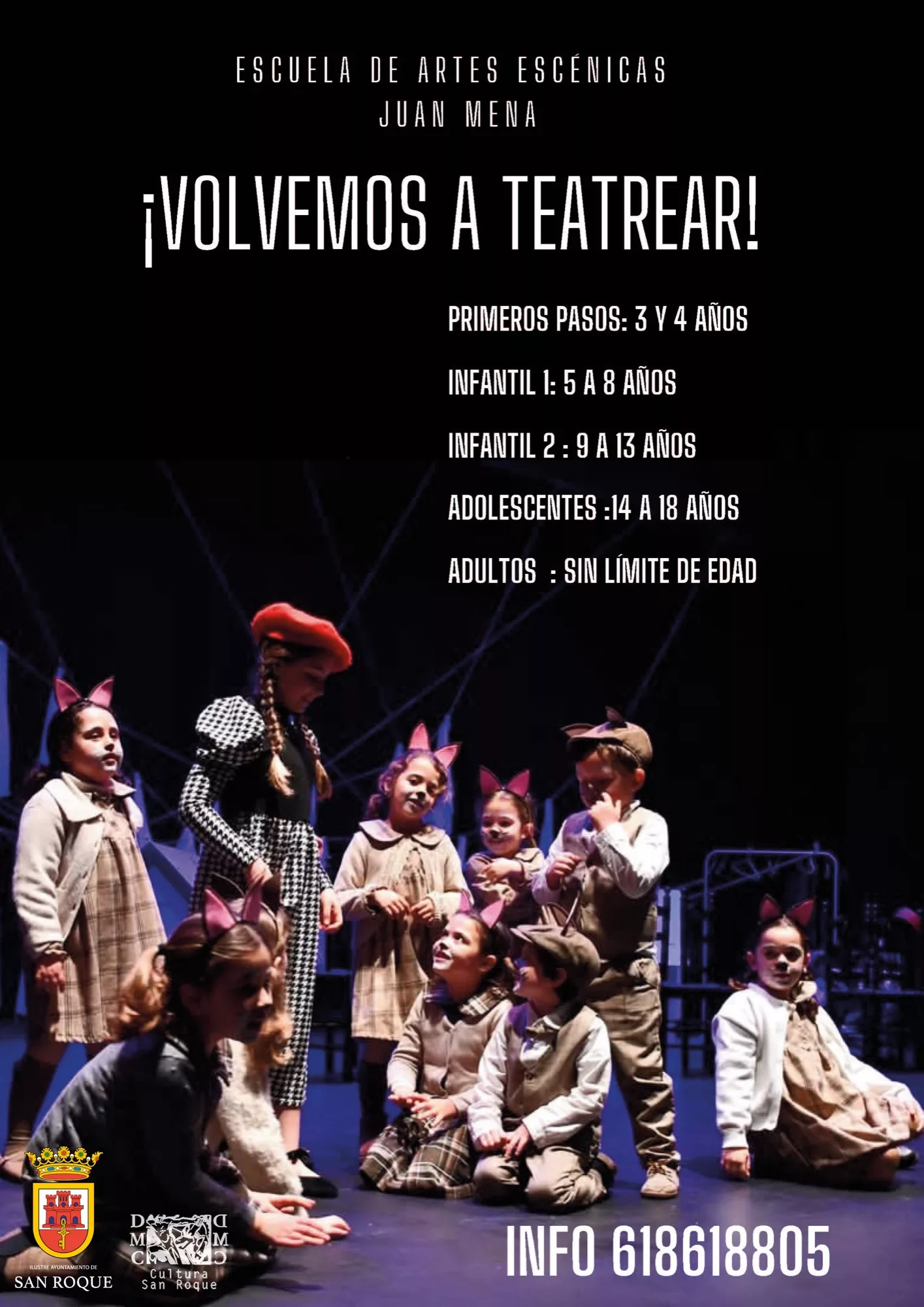 Con unos 100 alumnos el curso pasado, la Escuela de Artes Escénicas Juan Mena se pone en marcha con la campaña de inscripción para sus cinco grupos de edad, a partir de los tres años. Esta iniciativa municipal comenzó en 2020 con un taller de un mes, y se ha consolidado como un espacio creativo y de formación de primer nivel.