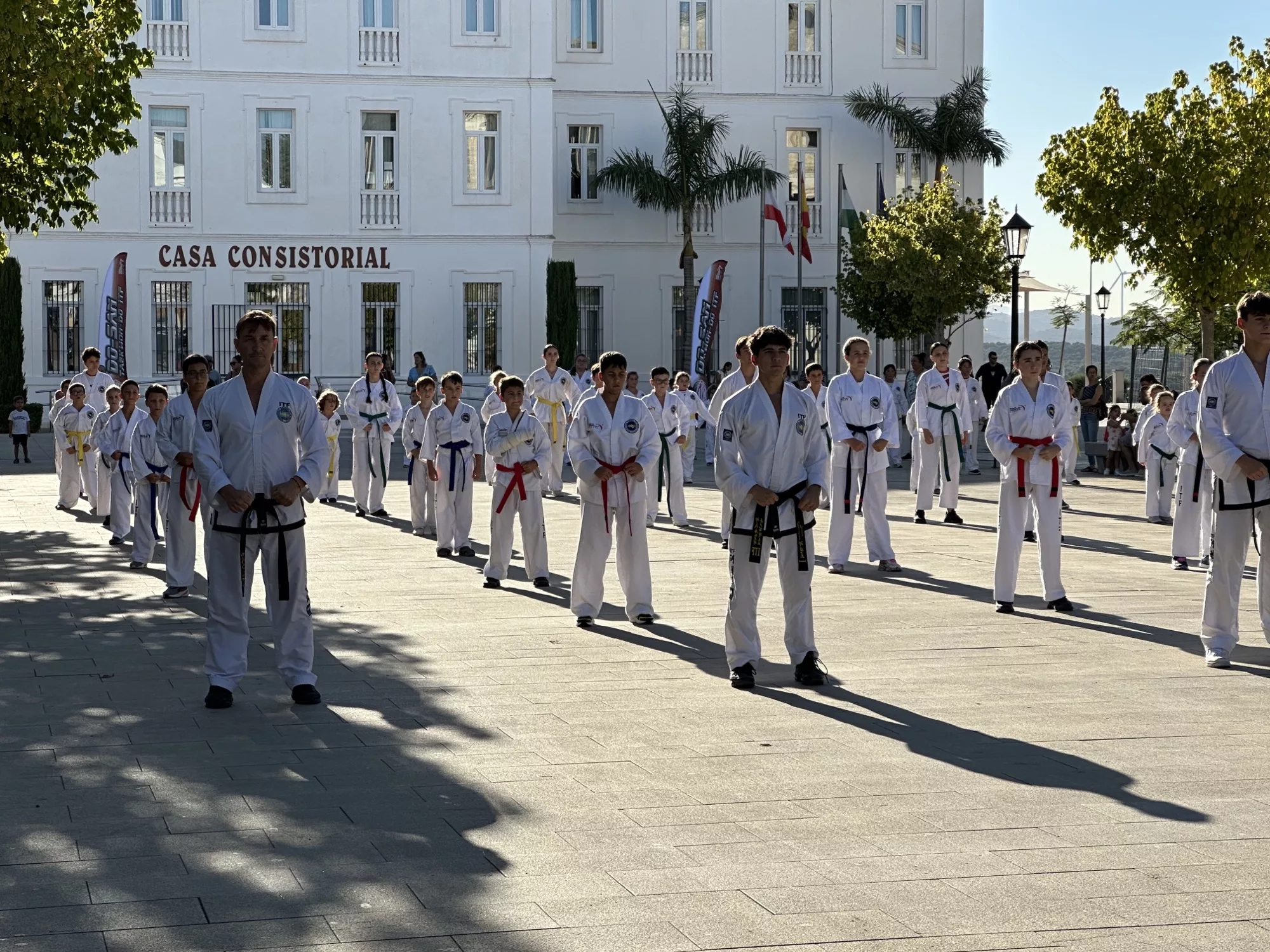 El Club Do-San volvió a dar el do de pecho, y este miércoles se pudo vivir el espectáculo del Taekwon-Do ITF en la Plaza de las Constituciones gracias a la clase práctica que sirve cada año como pistoletazo de salida del curso en la escuela municipal de base.