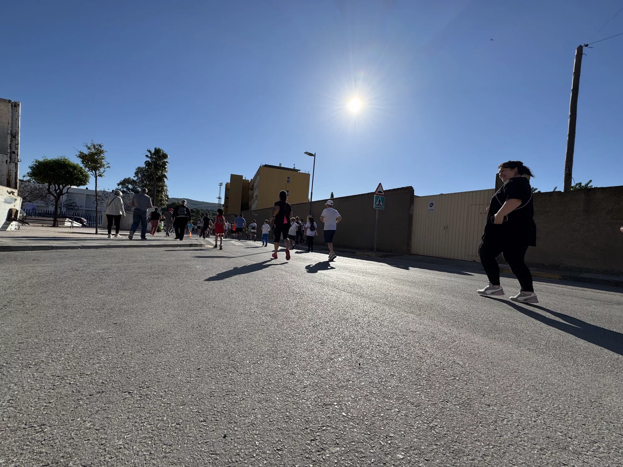 En la primera salida, los más pequeños hacían un recorrido simbólico desde el entorno del centro educativo hasta la Venta Pérez y los de la segunda tanda, hasta 6º de Primaria, daban una vuelta al campo municipal Manuel Mateo con destino a la misma meta.