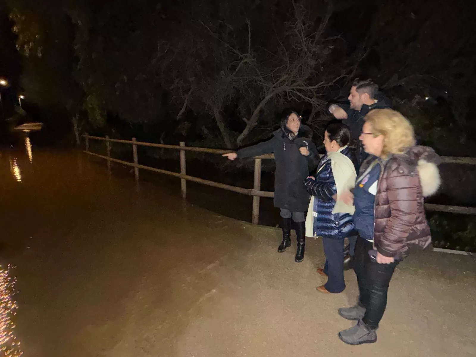 La alcaldesa accidental, María del Mar Collado, la teniente de alcalde delegada de Obras y Servicios, Belén Jiménez y el edil Abel Heredia, y la coordinadora de la AGE, Esperanza Pérez, visitaron algunas de las zonas afectadas por la borrasca, comprobando algunos de los problemas causados por la crecida de los ríos del municipio y conocer el estado de estos.