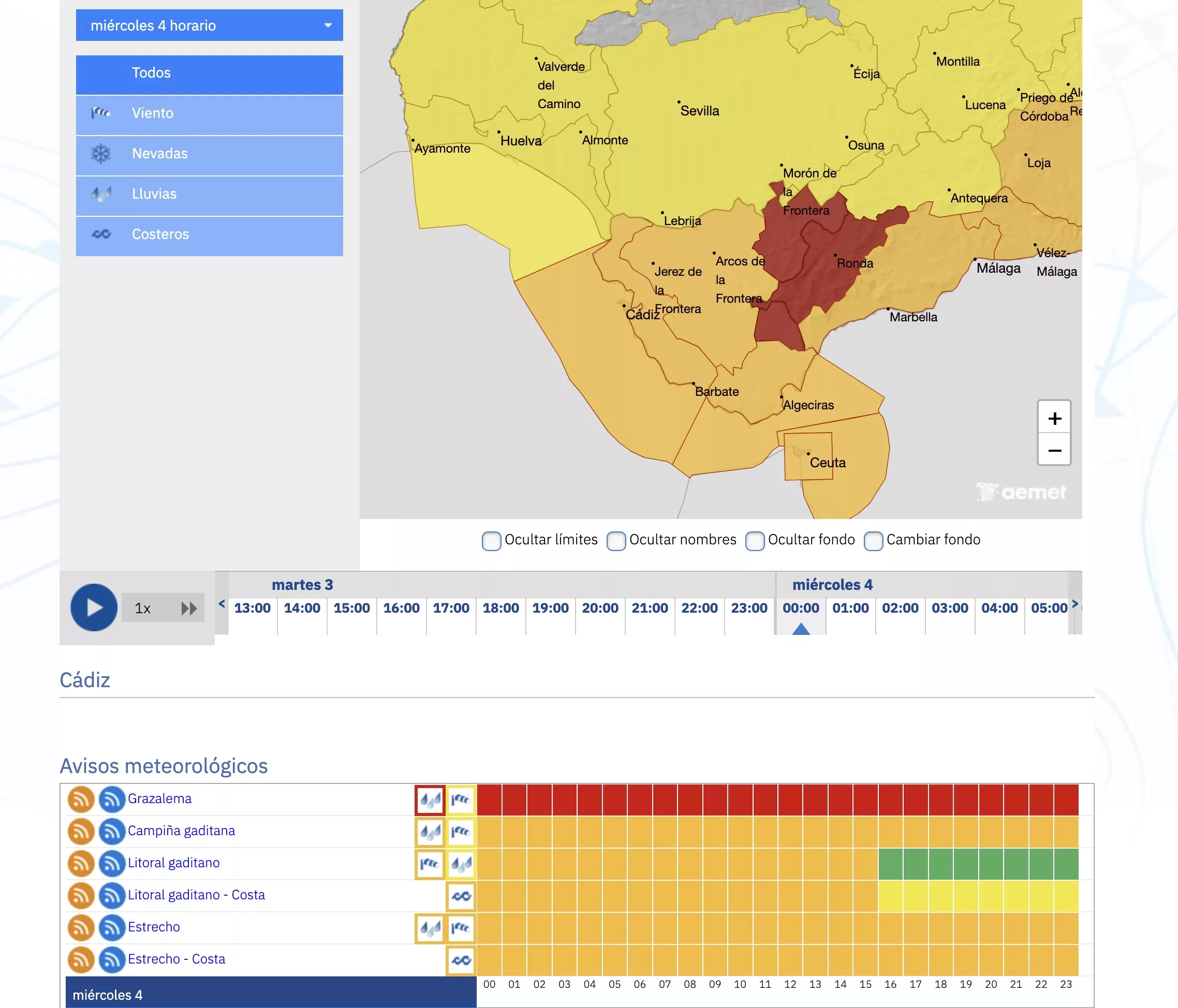 La Agencia Estatal de Meteorología, Aemet, ha dado aviso de alerta naranja en la zona del Estrecho para la noche de este martes y la jornada del miércoles.