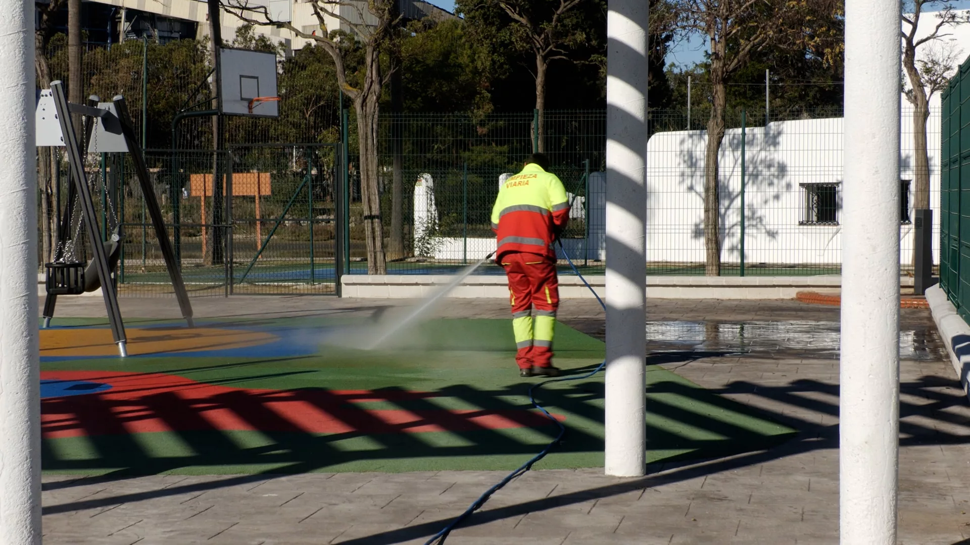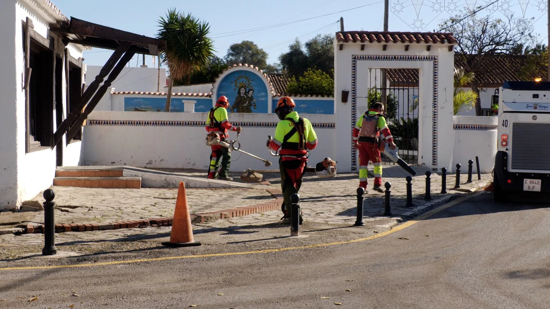 En esta última ocasión fue el turno de la barriada Guadarranque donde personal a pie han limpiado las calles con la máquina de agua a presión. Además, otros trabajadores con desbrozadoras quitaron malas hierbas de bordillos y acerado, mientras barrenderos recogían los restos.