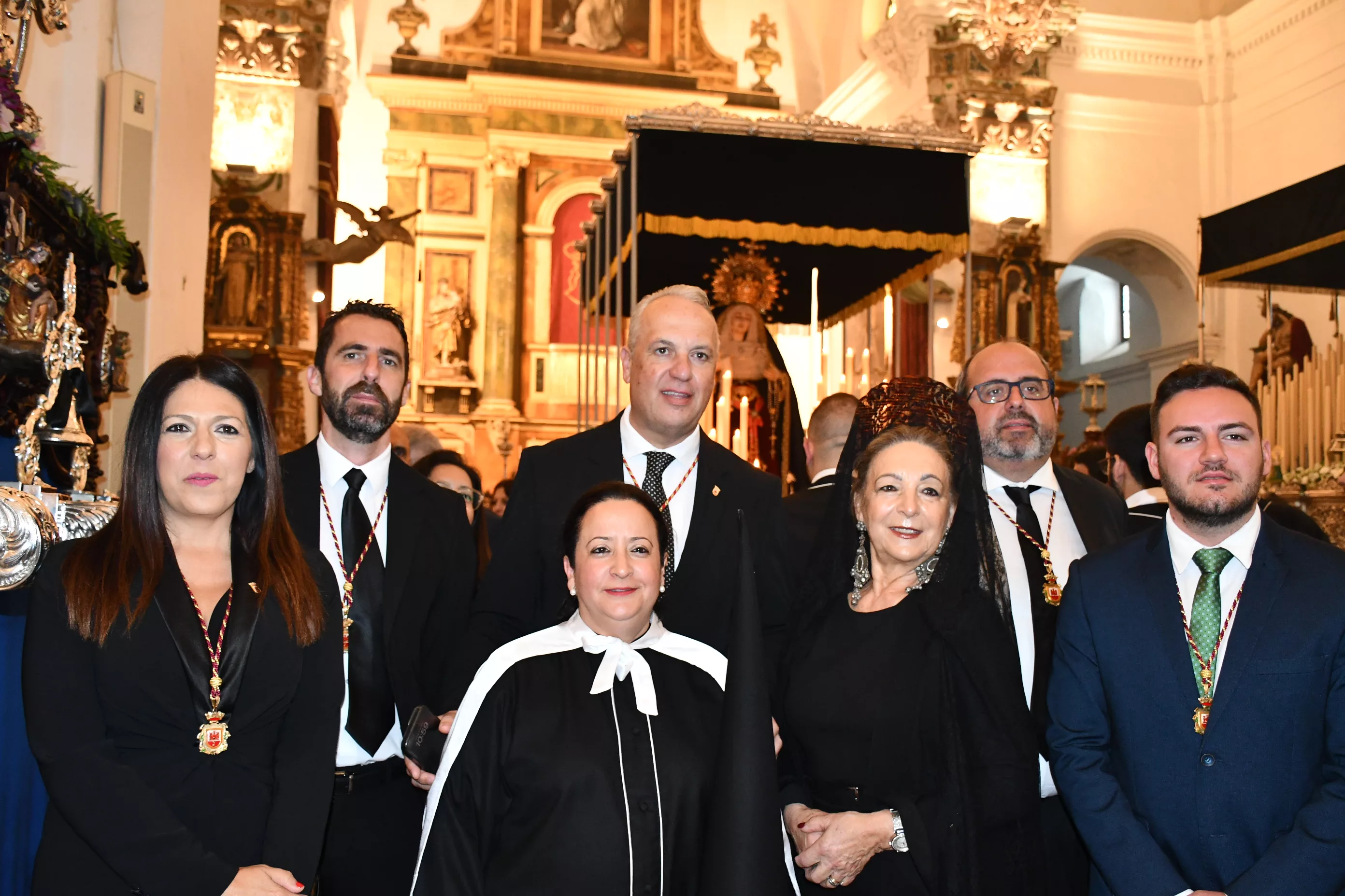 El alcalde de San Roque, Juan Carlos Ruiz Boix, junto a varios ediles de la Corporación Municipal, ha acompañado en la salida a las imágenes.