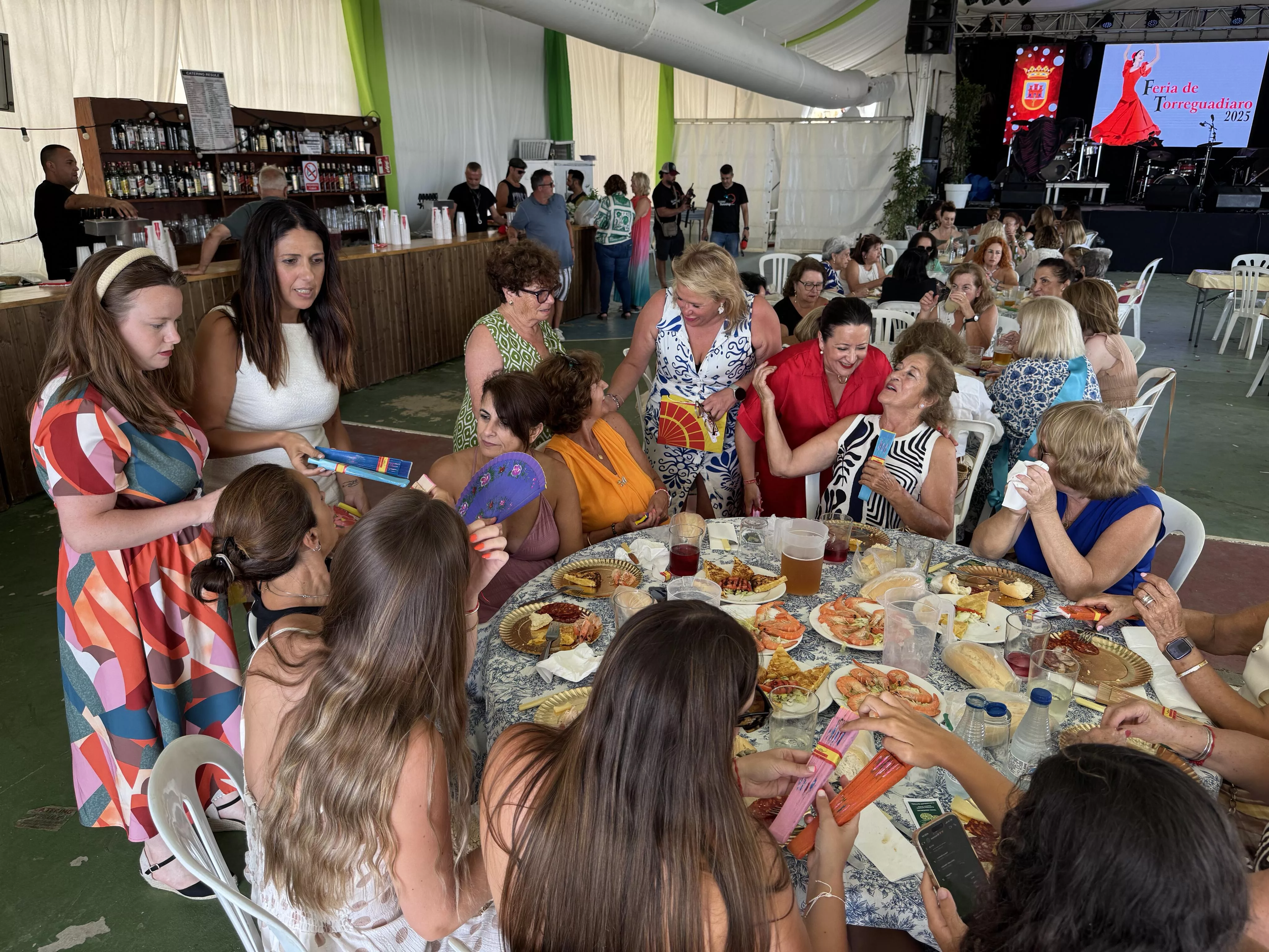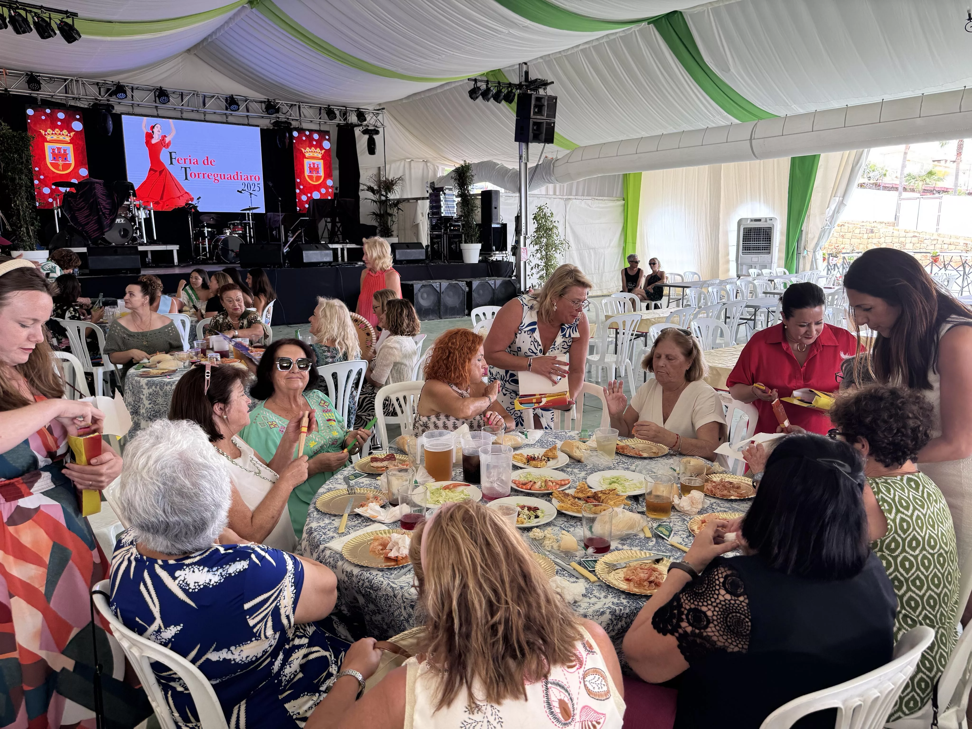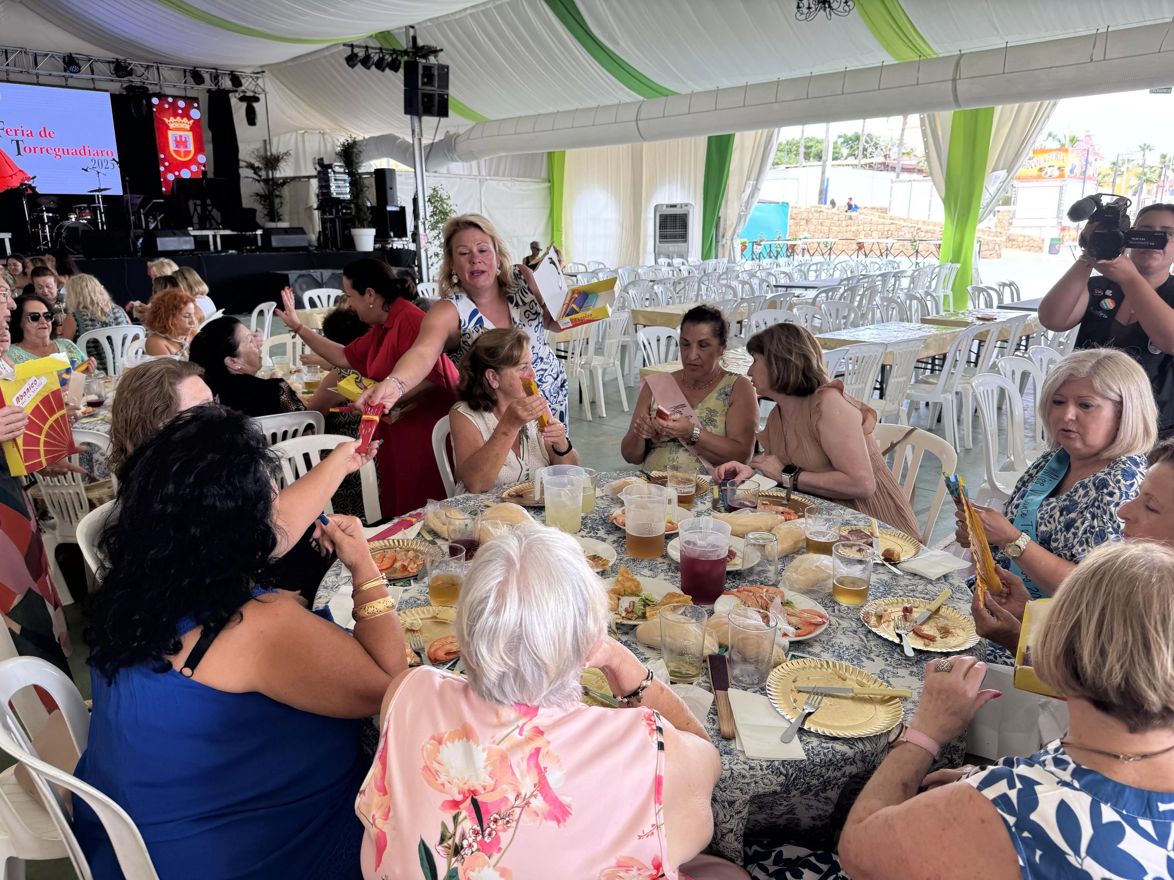 En la jornada de hoy sábado 12 de julio, con motivo de la festividad de la Virgen del Carmen, a las 14.00 horas se celebró la Comida de las Mujeres de la Feria de Torreguadiaro, a la que asistieron la teniente de alcalde de Fiestas, María del Mar Collado, la delegada del Valle del Guadiaro y edil de Igualdad, Eva Gil, y otras ediles, que entregaron un obsequio a las asistentes.
