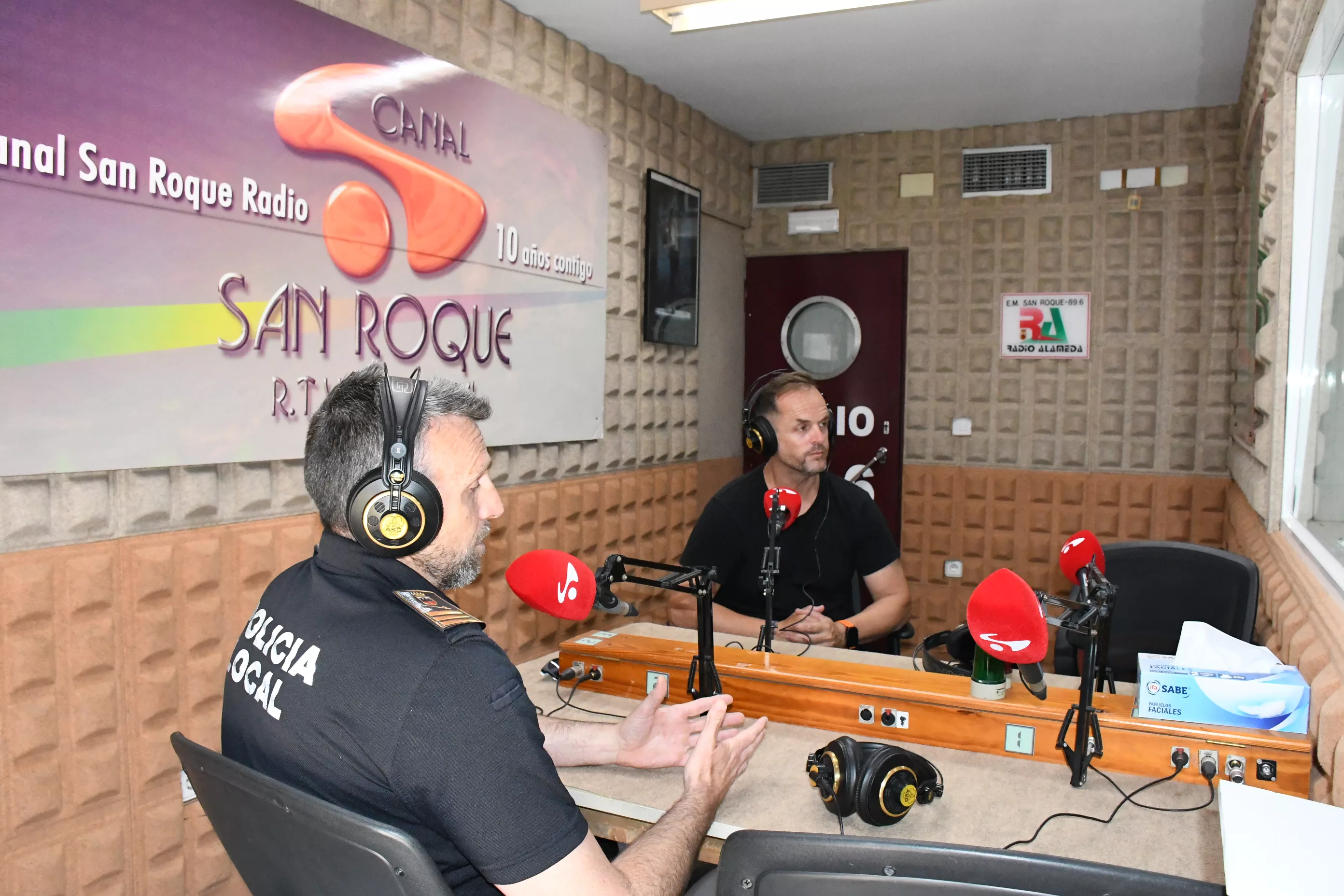 El inspector jefe de la Policía Local de San Roque, Rubén Pérez, junto con el oficial José Muñoz, han participado en directo en “Espacio Abierto”, el magazine-informativo de las mañanas de Canal San Roque Radio con el objetivo de dar a conocer cómo se ha desarrollado la campaña de concienciación del uso de los vehículos de movilidad personal, más conocidos como patinetes eléctricos, dado que existe aún mucho desconocimiento sobre su uso adecuado. Los agentes han desvelado que esta campaña volverá a realizarse el próximo curso escolar.