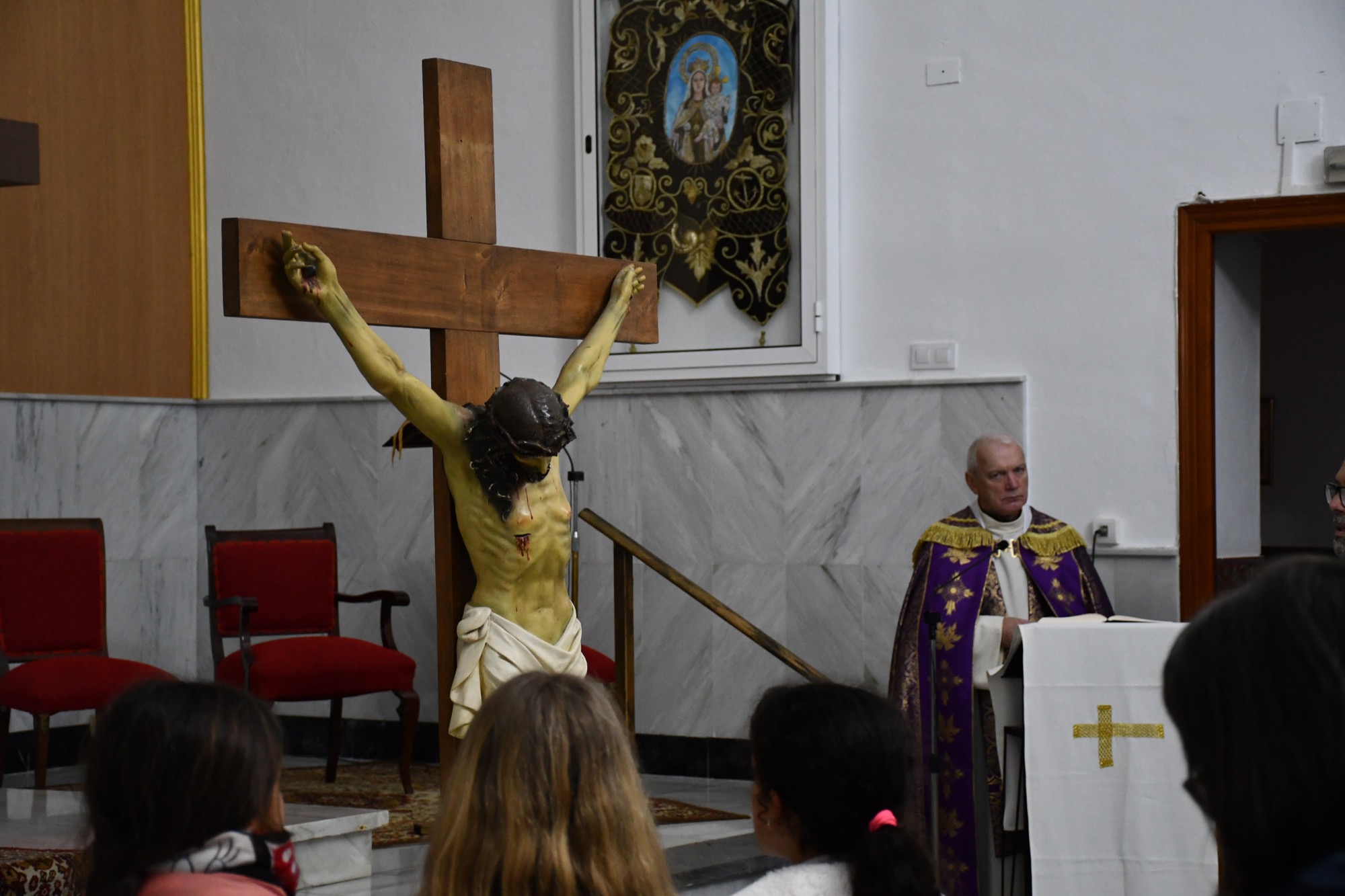 El tradicional via crucis de Puente Mayorga del Jueves Santo, la Procesión del Silencio, ha salido desafiando toda previsión de lluvia y ha procesionado por las principales calles de la barriada, una vez celebrada la misa en la Parroquia de San Hiscio.