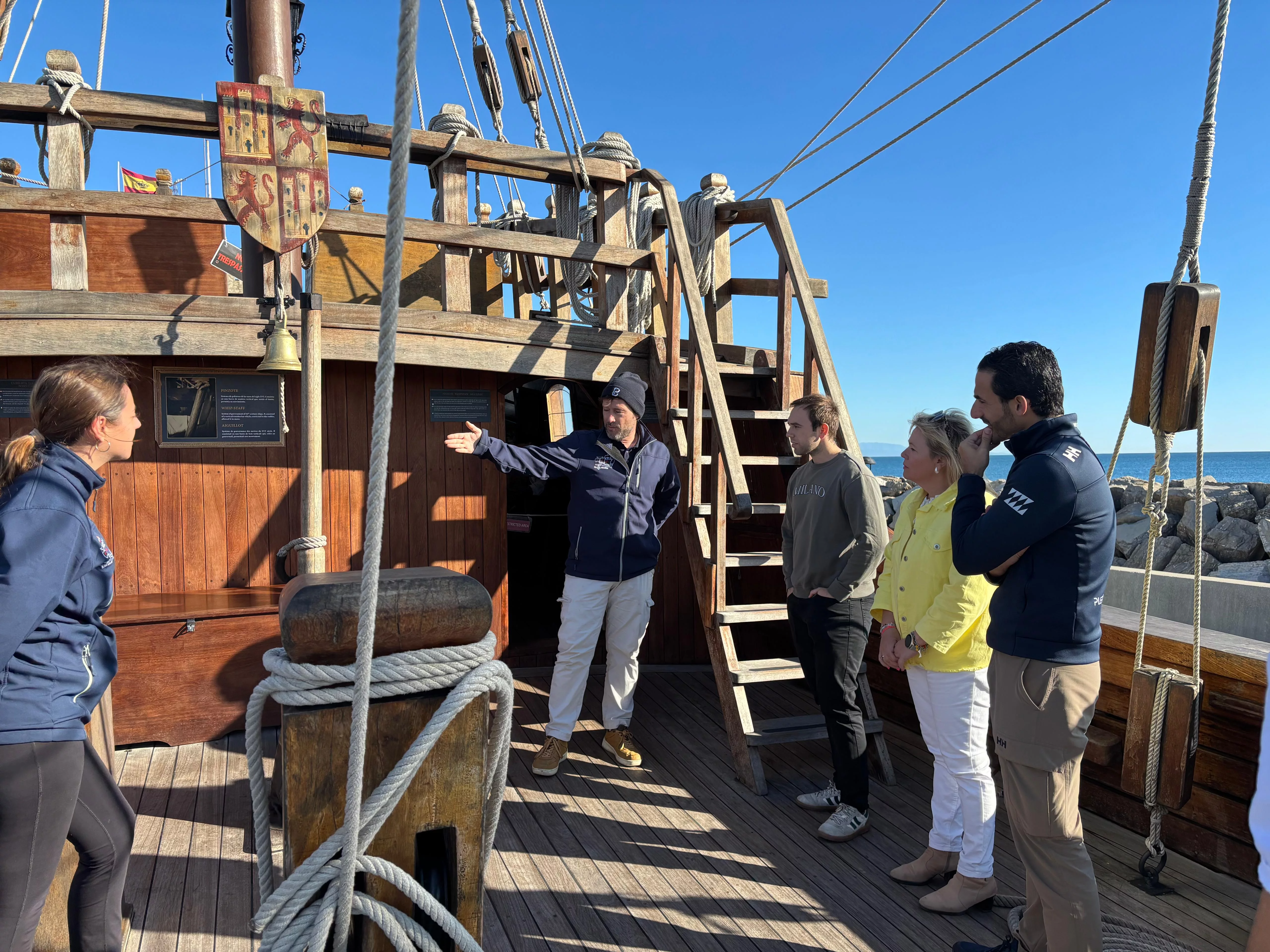Los ediles Alfonso Valdivia y Eva Gil han realizado una visita al navío junto a la subdirectora gerente de Puerto Sotogrande, Ely Ramos. Todos ellos fueron atendidos por un responsable de la Fundación Nao Victoria, quien explicó las características del barco, cómo se desarrolló el viaje de Magallanes-Elcano y cómo vive la tripulación que hoy en día navega en este barco, difundiendo la aventura que tuvo lugar hace cinco siglos.
