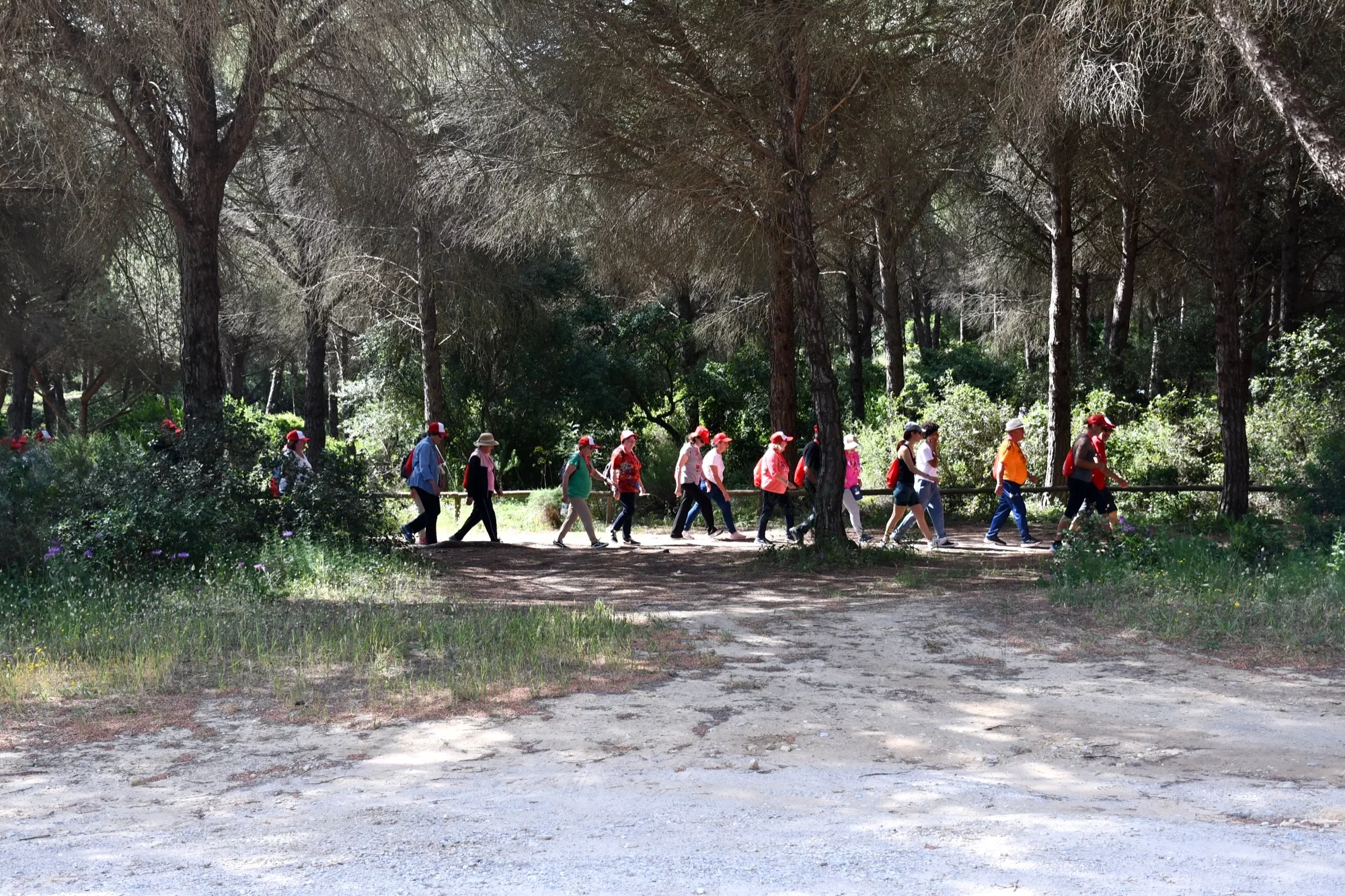El Aula de la Naturaleza del Pinar del Rey se convierte este domingo en sede temporal de la Universidad Popular sanroqueña, ya que cientos de alumnos y alumnas de sus numerosos talleres y muchos de sus familiares comparten una jornada de convivencia. El concejal de este departamento, Fernando Vega, no ha faltado a la cita, y les ha acompañado en los momentos previos al inicio de una ruta por el sendero del Cerro del Águila.
