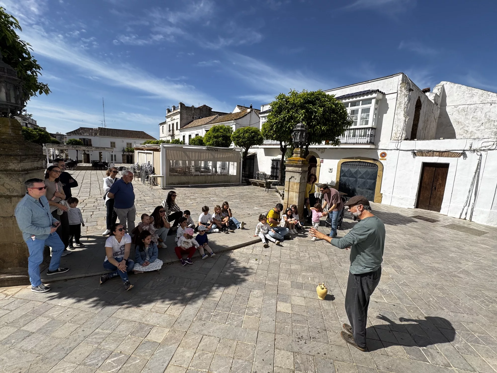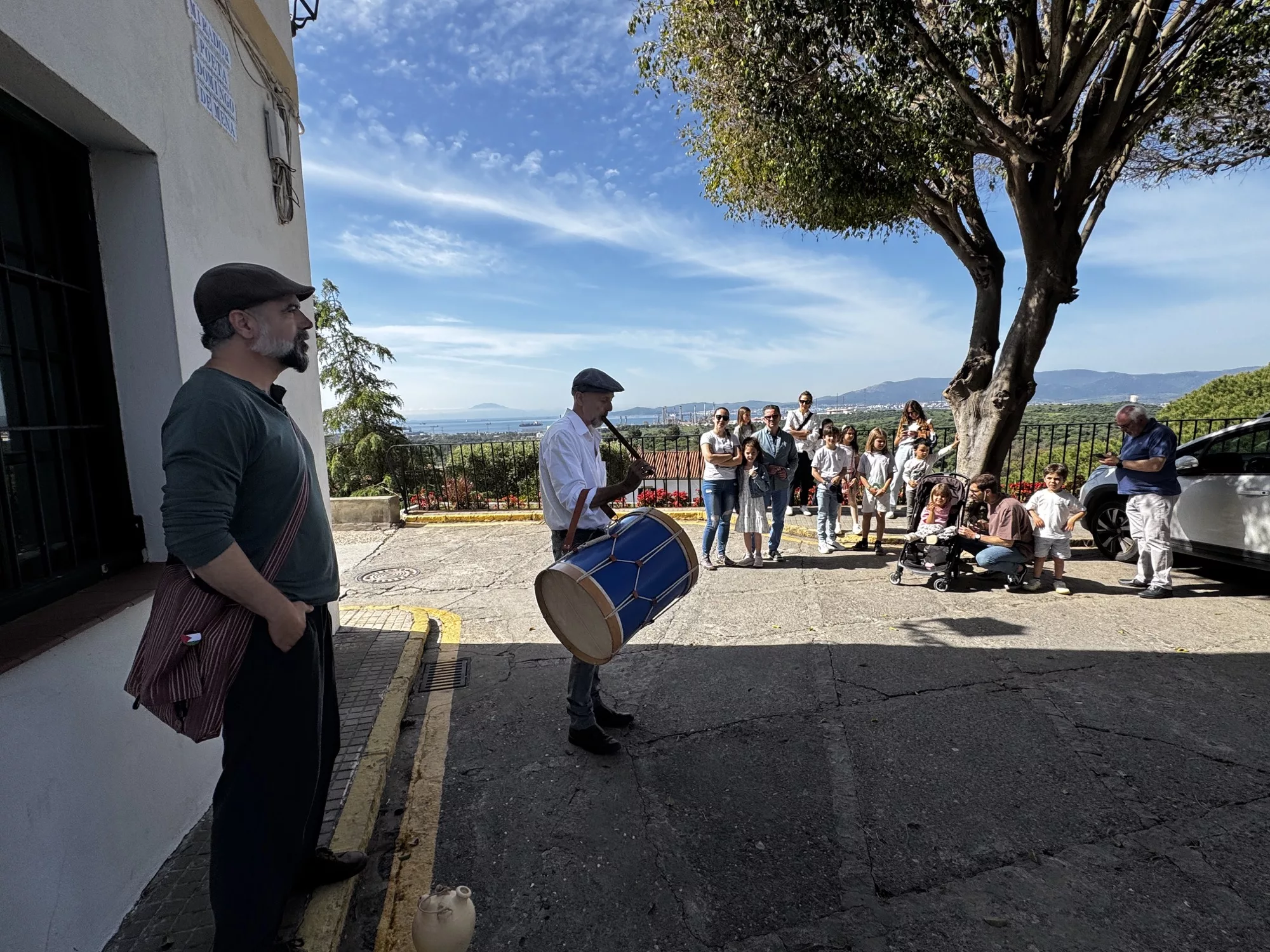 Allí los pequeños acompañados de sus madres y padres disfrutaron de una sesión de cuentacuentos aún más dinámica, ya que se trataba de recorrer puntos estratégicos del casco histórico de San Roque, con comienzo en el Mirador de Los Cañones y pasando por Plaza de Armas, Plaza de la Iglesia hasta la carpa instalada en la Alameda Alfonso XI. El narrador Diego Magdaleno explicó que los cuentos se contaban en relación al paisaje y la zona donde se producía la parada, con tamboril y flauta de Don Jozelito.