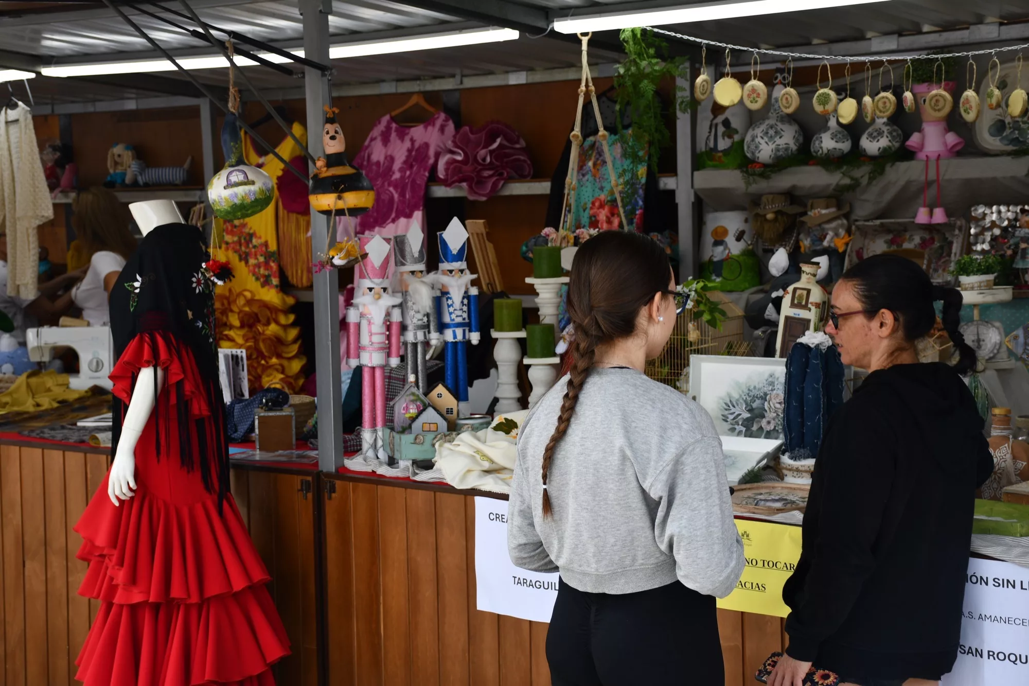 La Alameda Alfonso XI acogió en la tarde del martes la inauguración de esta XXIII Feria del Arte, que se prolongará hasta el viernes. En la mañana del miércoles continuaba la actividad en dicho paseo sanroqueño, donde se encuentran los stands donde se pueden contemplar los objetos elaborados por distintos talleres. En el cercano Espacio Joven, por otro lado, se exponen los cuadros realizados por el alumnado de los talleres de pintura.