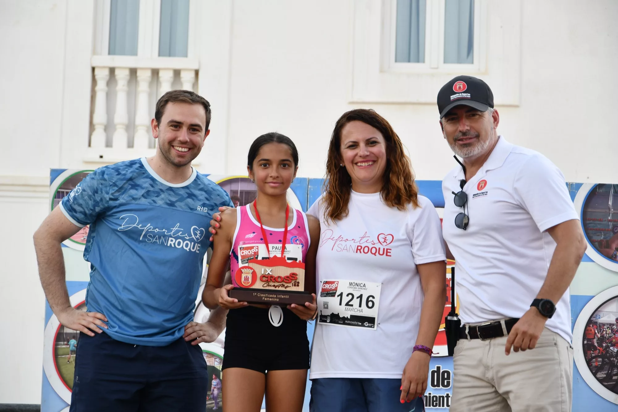 La Plaza de las Constituciones ha sido la línea de salida y de meta para las carreras de categorías Benjamín, Alevín e Infantil del IX Cross de las Cuestas, que se han desarrollado en la tarde de este sábado, una vez que por la mañana se disputaron las pruebas de Peque Atletas. La teniente de alcalde de Deportes, Mónica Córdoba, el concejal Alfonso Valdivia y el director de la competición, Juan Carlos Crespo, entregaron trofeos a los primeros clasificados de las respectivas pruebas, si bien previamente todos los participantes tuvieron su medalla.