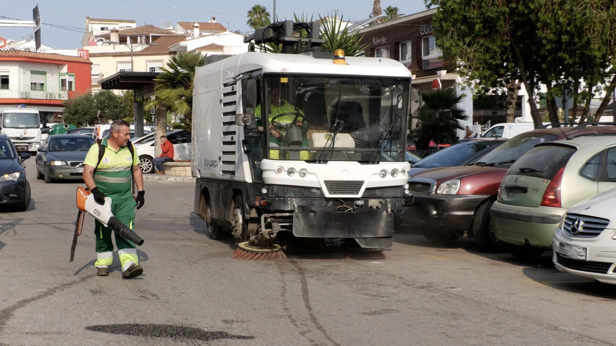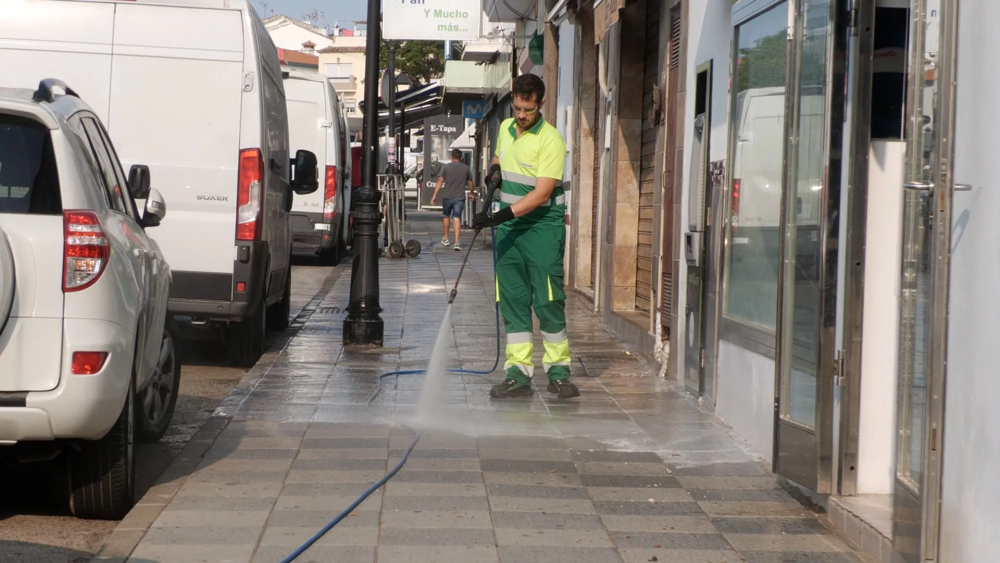 Operarios adscritos a Limpieza Viaria han realizado durante la mañana de este miércoles labores de limpieza exhaustiva por Pueblo Nuevo de Guadiaro, especialmente en la zona comercial de Sierra Bermeja.