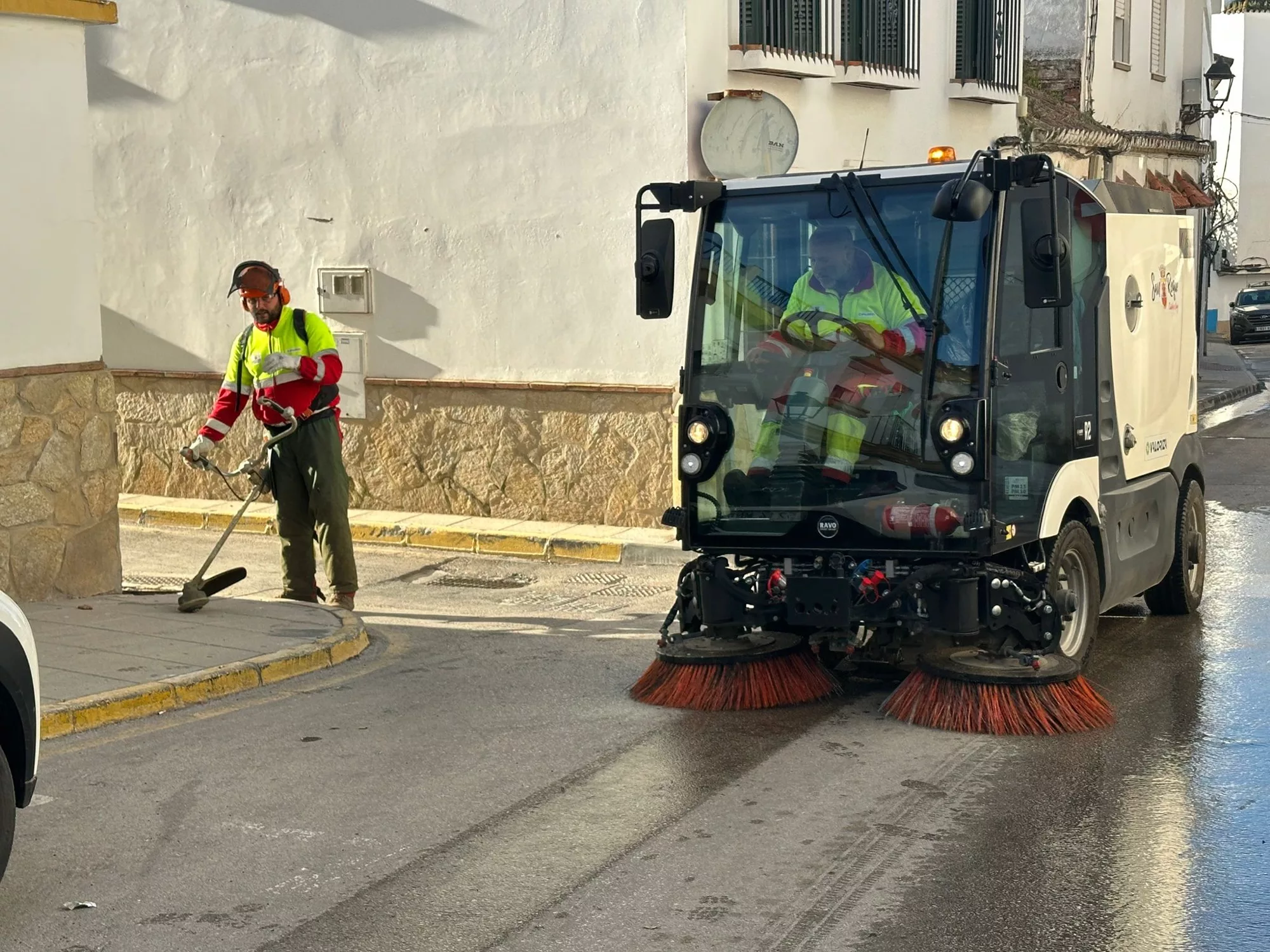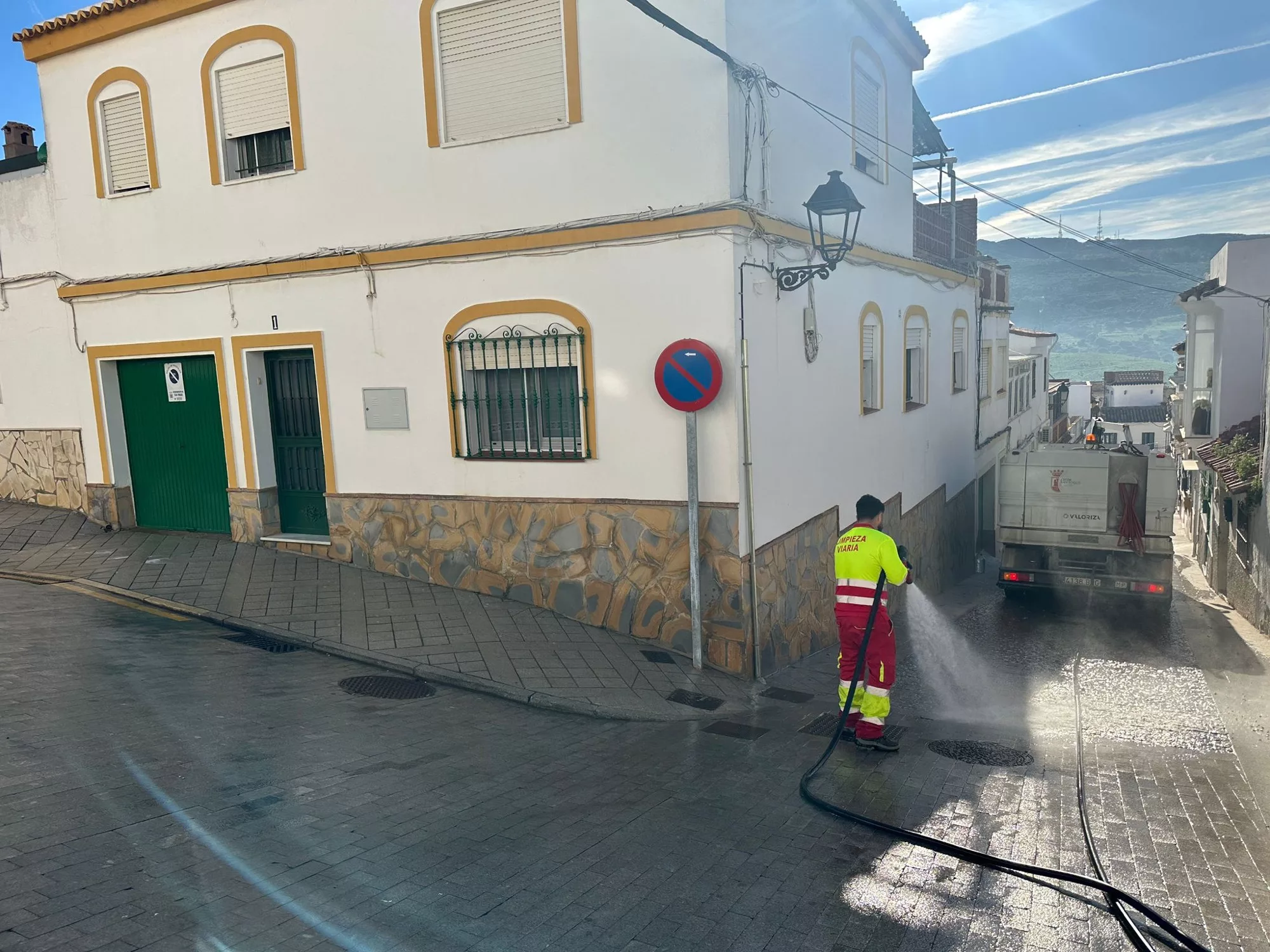 Personal adscrito a la Delegación de Limpieza Viaria ha realizado en la mañana de este jueves una limpieza especial en San Roque Ciudad, especialmente en la calle Constitución y en las vías que bajan desde la parte alta del Casco Histórico a esta emblemática vía sanroqueña.