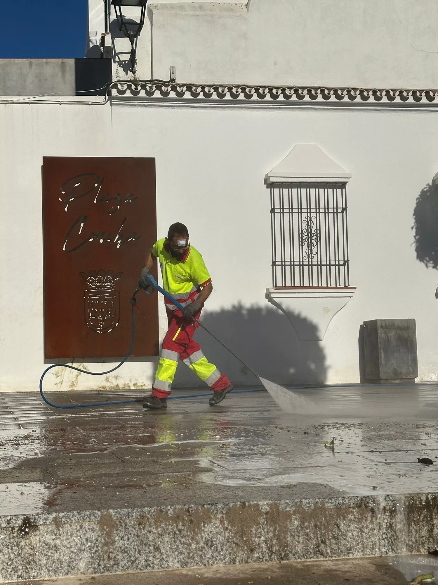 Operarios de la empresa adjudicataria de la Limpieza Viaria en San Roque, Valoriza, realizan cada semana una limpieza especial en un núcleo de población distinto del municipio. En esta ocasión se ha llevado a cabo en la calle Constitución, Plaza Concha y calles Consuelo y Prevención, entre otras de San Roque Ciudad.