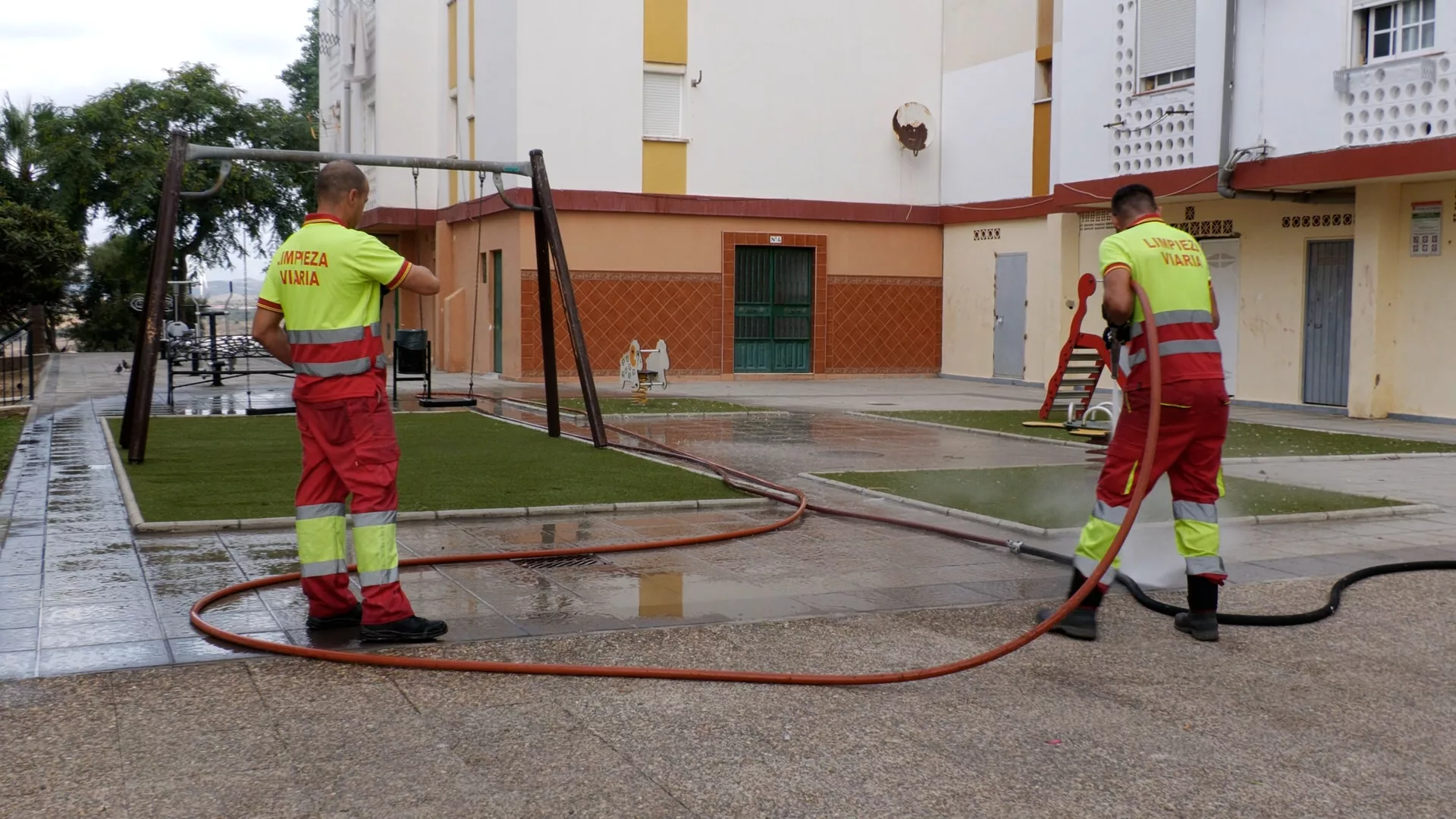 Personal adscrito a la Delegación de Limpieza Viaria ha realizado en la mañana de este miércoles una limpieza especial en la barriada de La Paz, en San Roque Ciudad.