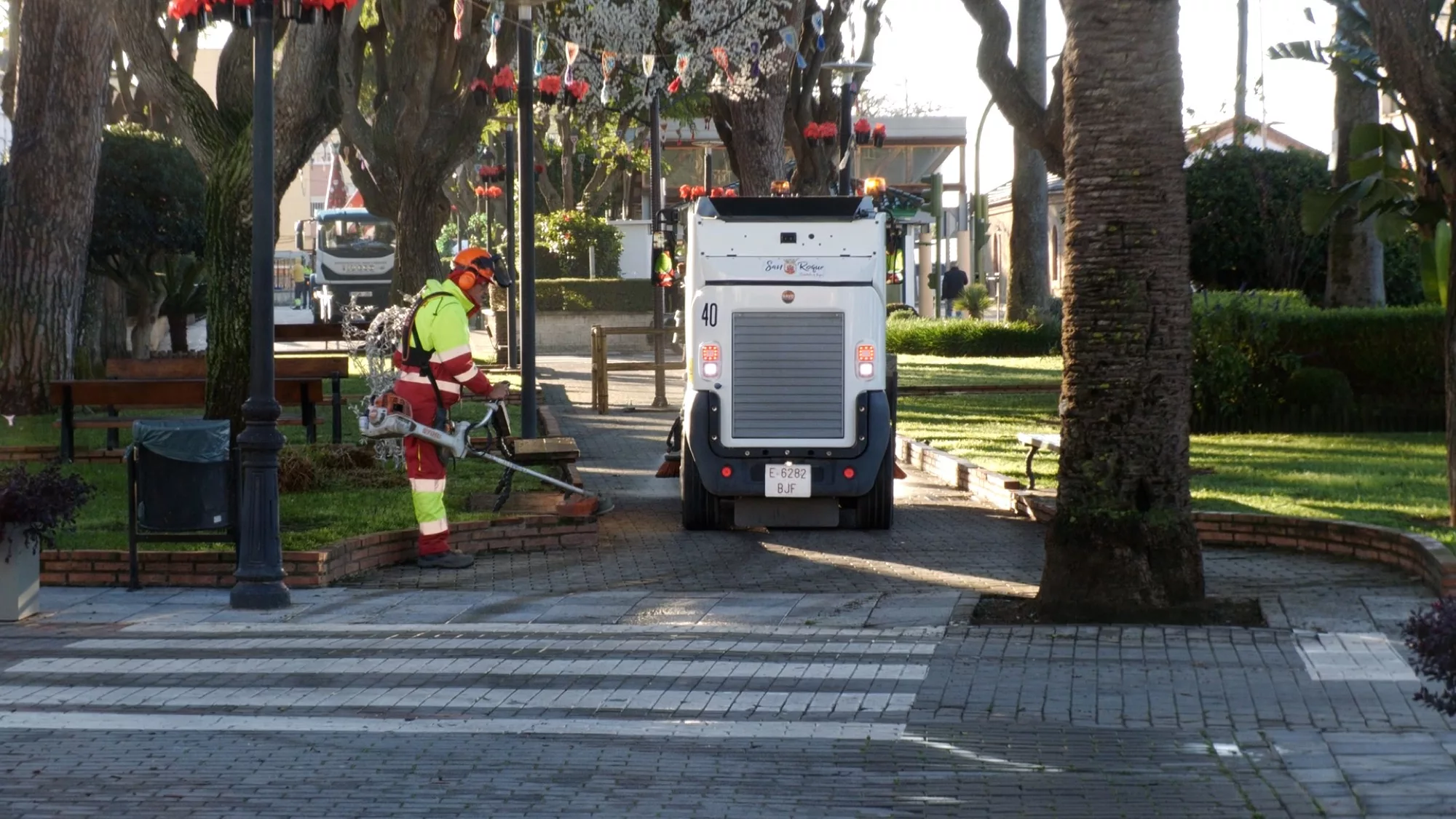 En estas limpiezas especiales se ha utilizado agua reutilizada a presión para acabar con la suciedad incrustada en el pavimento, mientras personal a pie desbrozaba la vegetación que aparece en esquinas y zócalos.