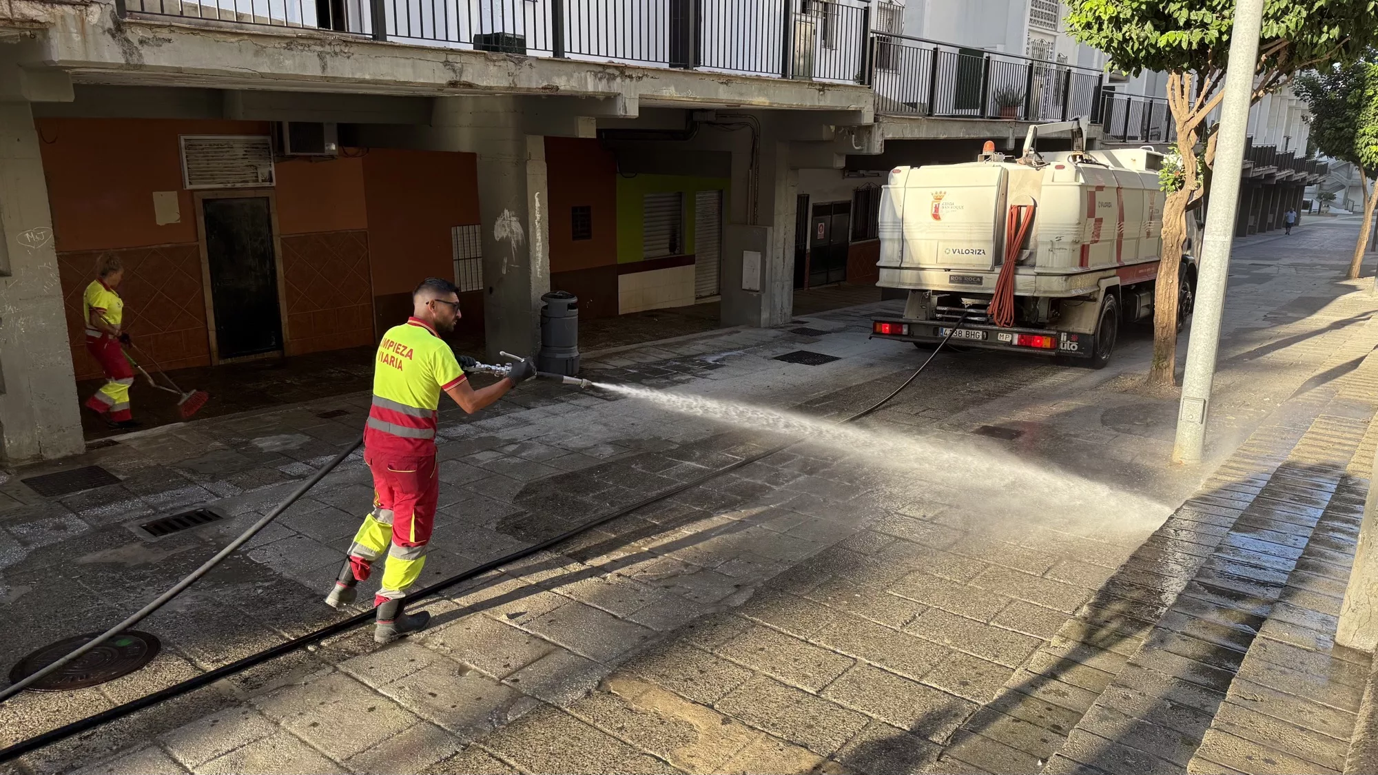 Personal adscrito a la Delegación de Limpieza Viaria ha realizado en la mañana de este miércoles una limpieza especial en la barriada de Los Olivillos, en San Roque Ciudad.