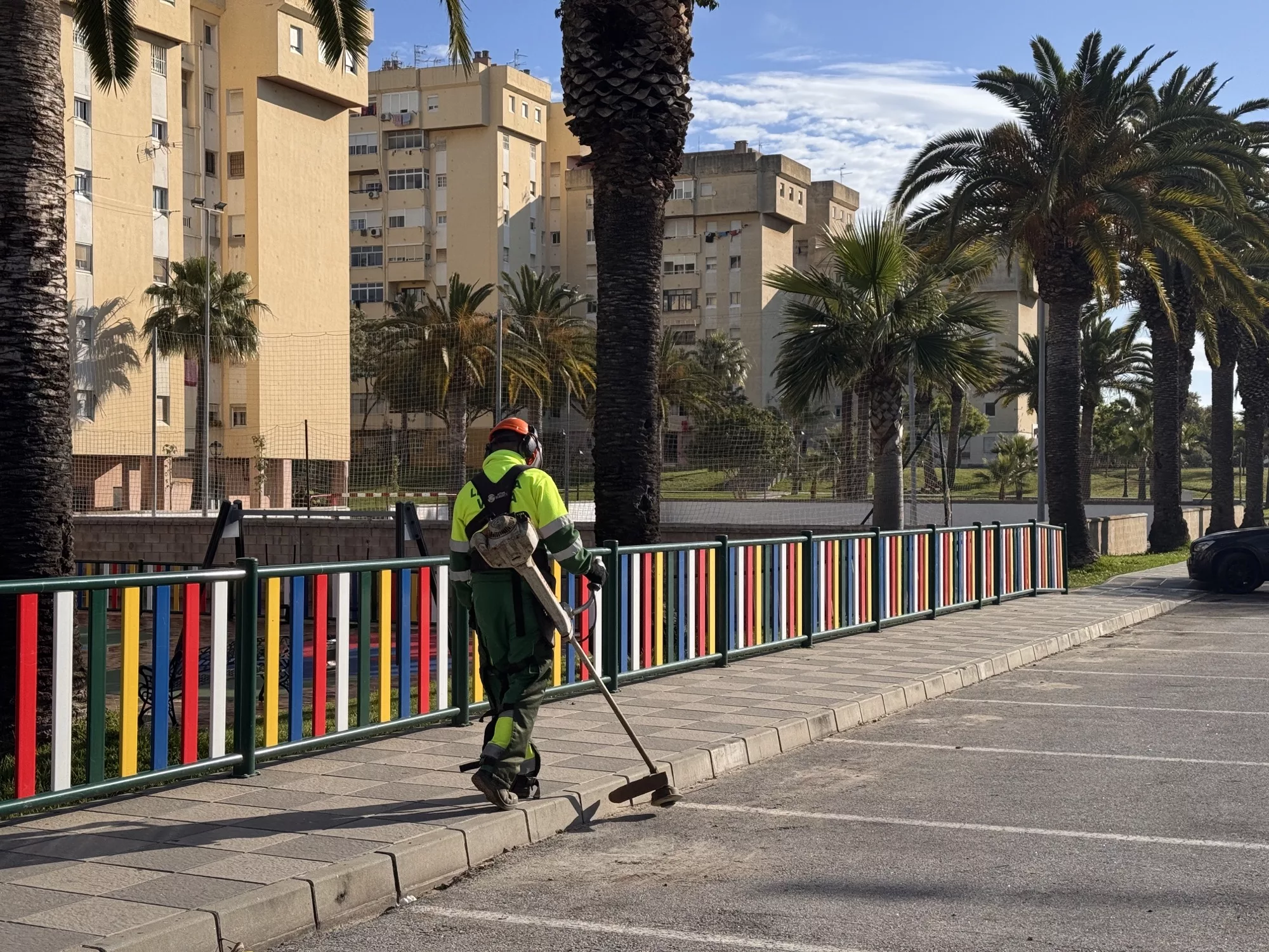 La barriada de Miraflores ha sido sometida este miércoles a la limpieza especial que cada semana llevan a cabo trabajadores adscritos a la Delegación de Limpieza Viaria en un núcleo de población distinto del municipio. Además, se han realizado varias labores de jardinería, entre las que destacaron la poda y limpieza de palmeras.