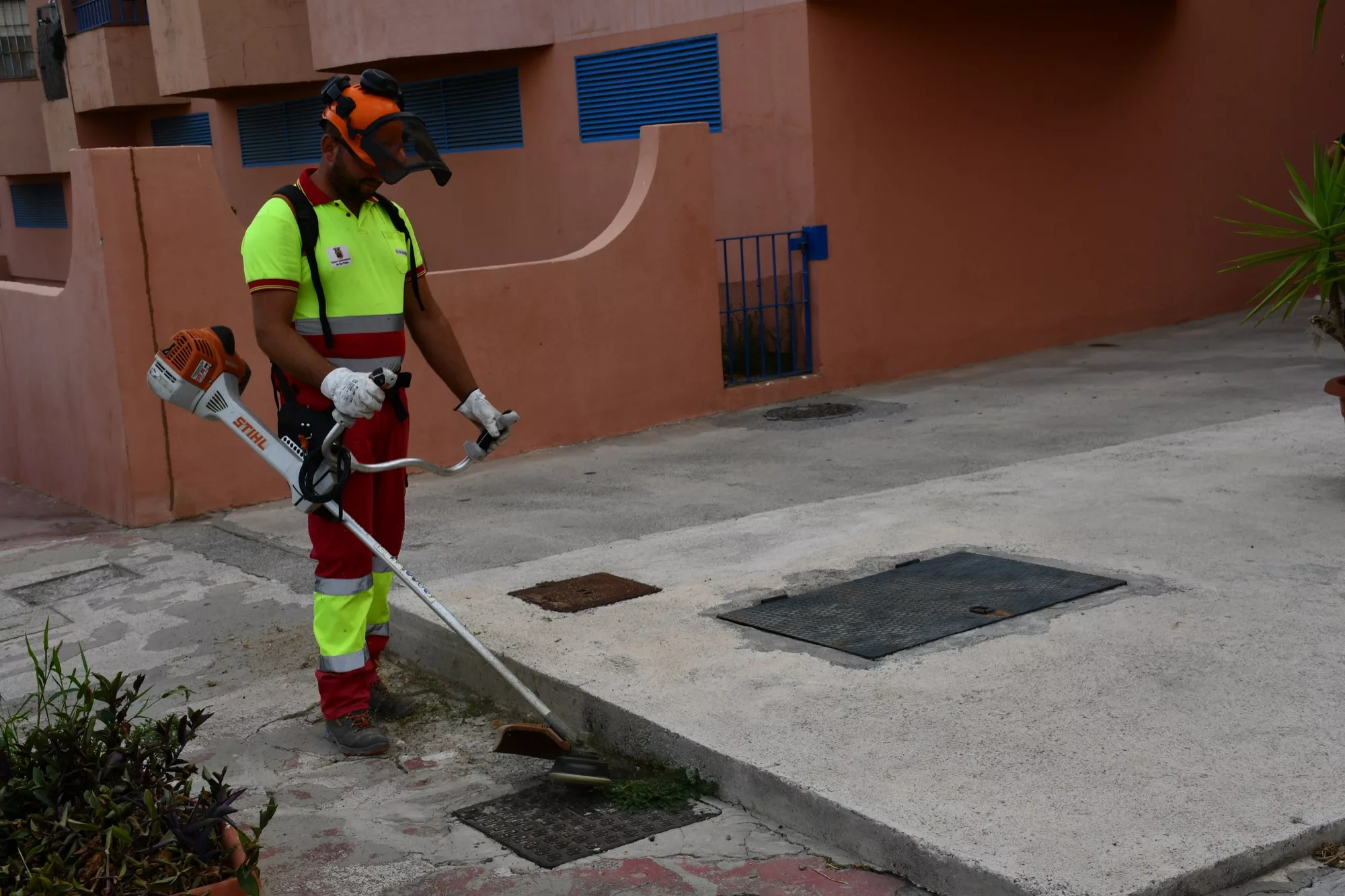 Trabajadores adscritos a Limpieza Viaria han realizado durante la mañana de hoy, miércoles, una limpieza más exhaustiva en algunas zonas residenciales de La Pólvora, labor que complementa la que se realiza a diario por todo el municipio de forma más genérica.