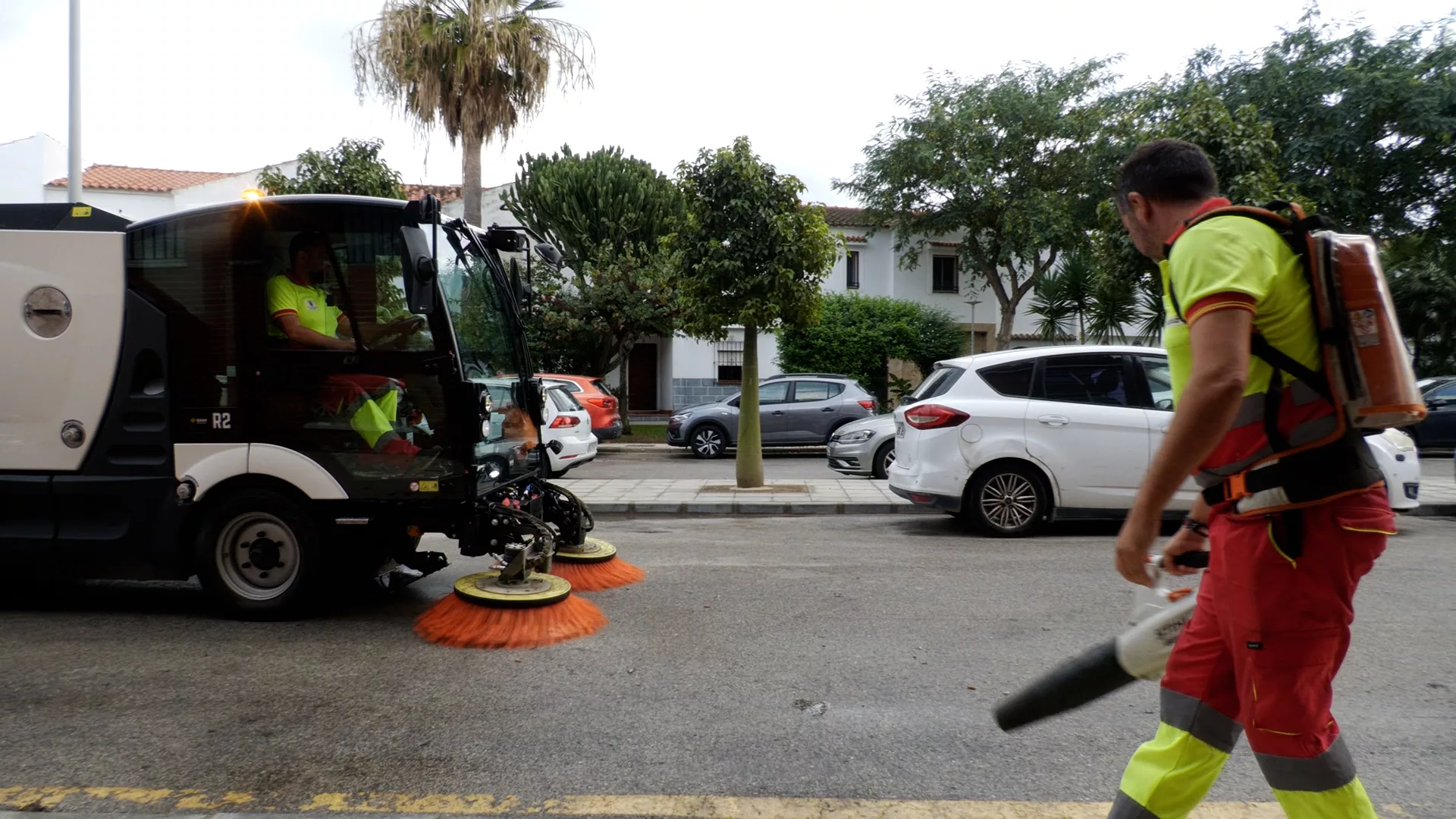 Trabajadores adscritos a Limpieza Viaria, delegación que coordina el teniente de alcalde Juan Serván, han acometido en la mañana de hoy, miércoles, una limpieza integral por toda la barriada de La Torrecilla, en San Roque Ciudad, labor que se ha realizado en la vía pública, parques y jardines y por el entorno de zonas residenciales.