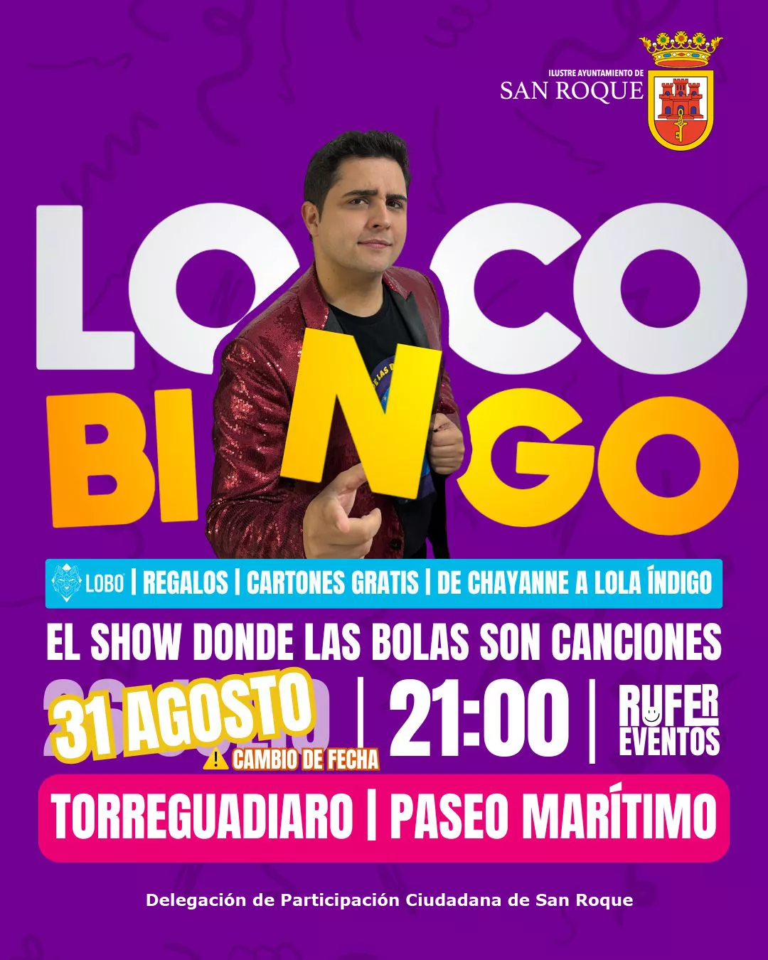 Este domingo, 31 de agosto, “Loco Bingo” estará presente el paseo Marítimo de Torreguadiaro. Este show, donde las bolas son canciones, es una actividad que combina diversión, música y participación, y que está promovida por la delegación de Participación Ciudadana, que dirige la edil Rocío Fernández.