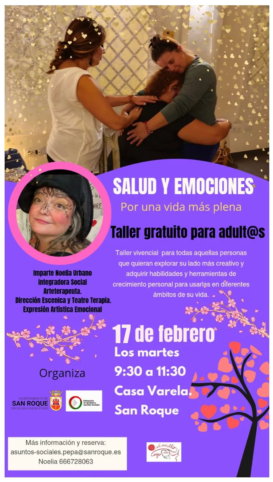 El Taller con horario de mañana, lo imparte la profesional Noelia Urbano Martínez quien preside la Asociación de Desarrollo Personal “El Ovillo Rojo”. Es Arteterapeuta y Directora Escénica con una experiencia profesional de 25 años. Lleva en la actualidad distintos grupos de estas características abarcando tanto a niños, como adolescentes y adultos del Campo de Gibraltar.