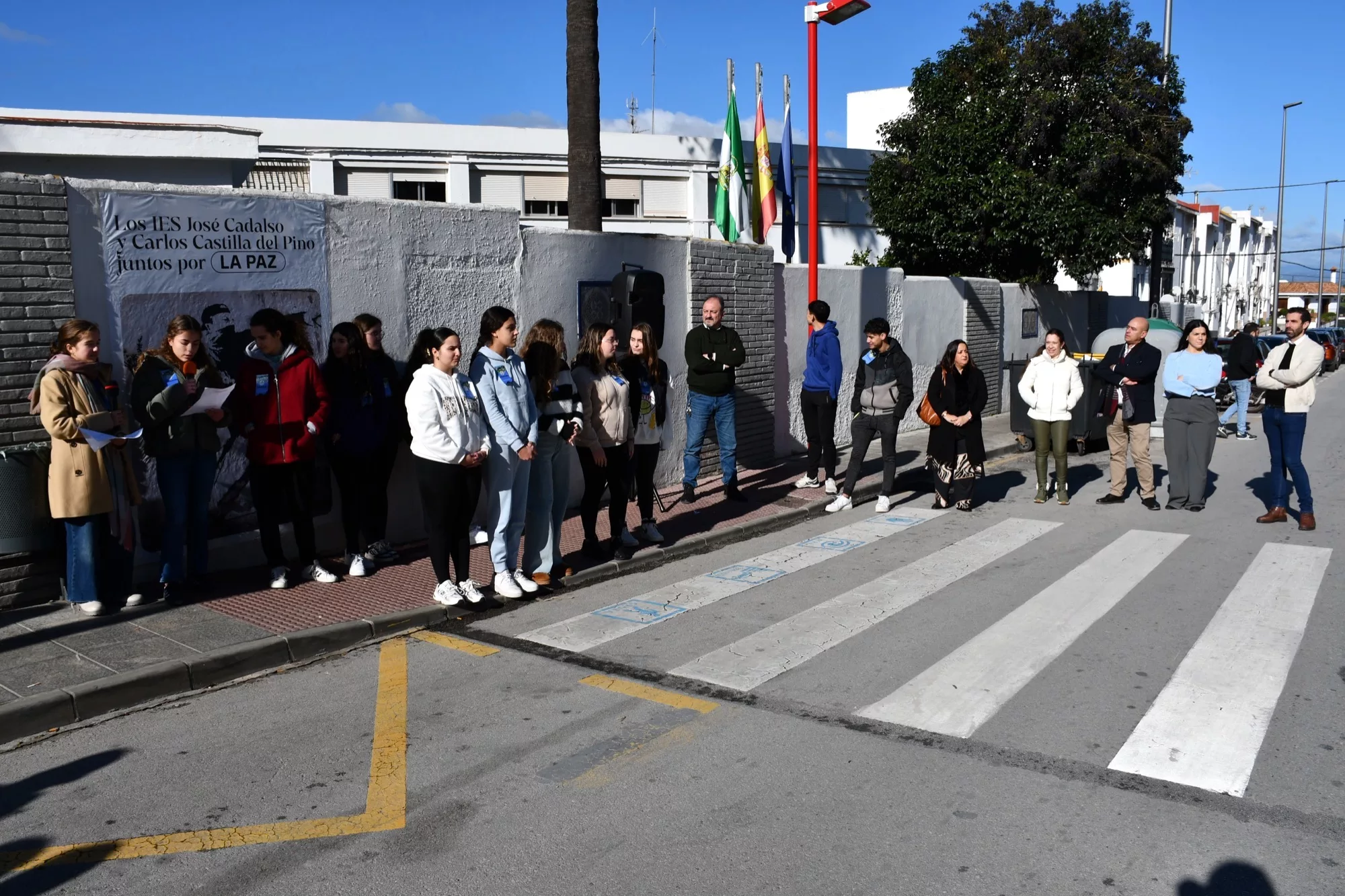 Con el objetivo de mostrar el compromiso de las jóvenes generaciones por un presente y un futuro en paz, los institutos sanroqueños Carlos Castilla del Pino y José Cadalso han celebrado este jueves un acto conjunto. Entre los asistentes se encontraban los tenientes de alcalde María del Mar Collado y David Ramos.
