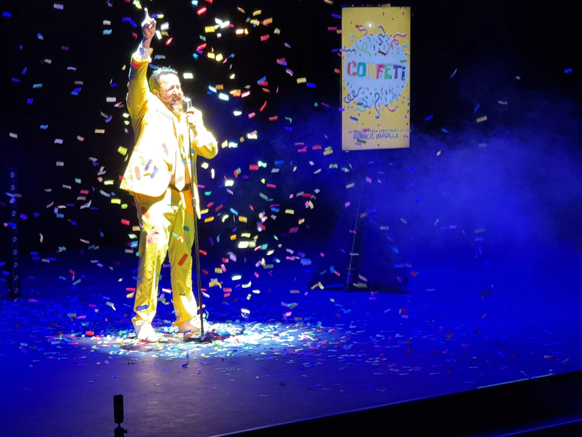 El mago Francis Zafrilla combinó ilusionismo, magia y títeres su show “Confeti” y mandó un mensaje a los pequeños que todo es posible con esfuerzo, humildad y pasión. Además, llenó la tarima de confeti, lo que divirtió a los asistentes y llenó la sala de color.