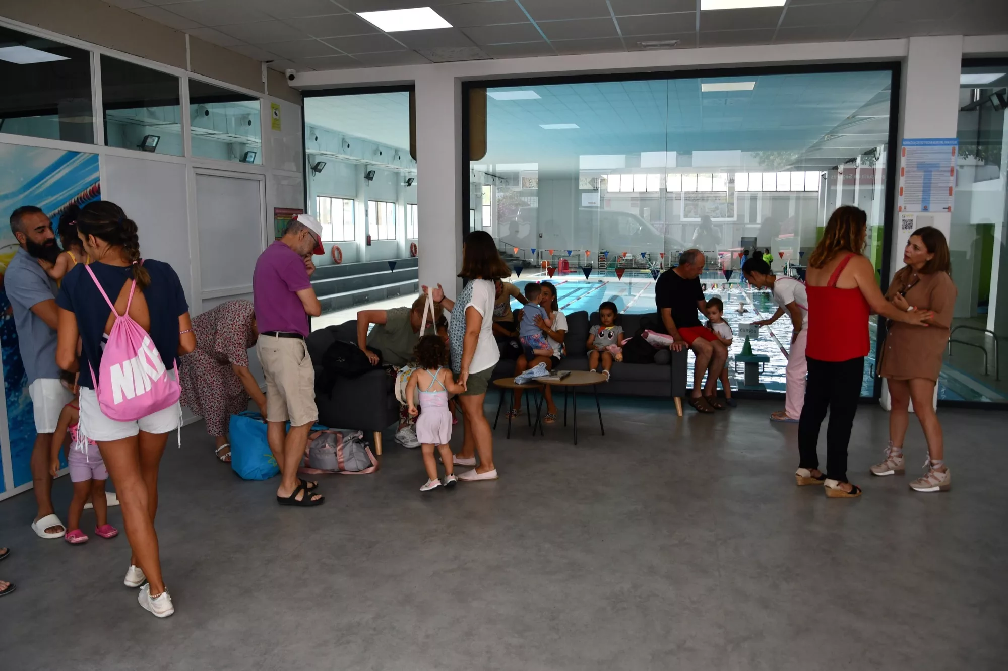 La teniente de alcalde delegada de Deportes y Educación, Mónica Córdoba, se ha desplazado en la mañana de este miércoles a la Piscina Municipal, donde un grupo de pequeños de la Escuela Infantil Nelson Mandela estaba preparado para participar en una gran experiencia: su primera clase de natación, y además acompañados de sus familiares.