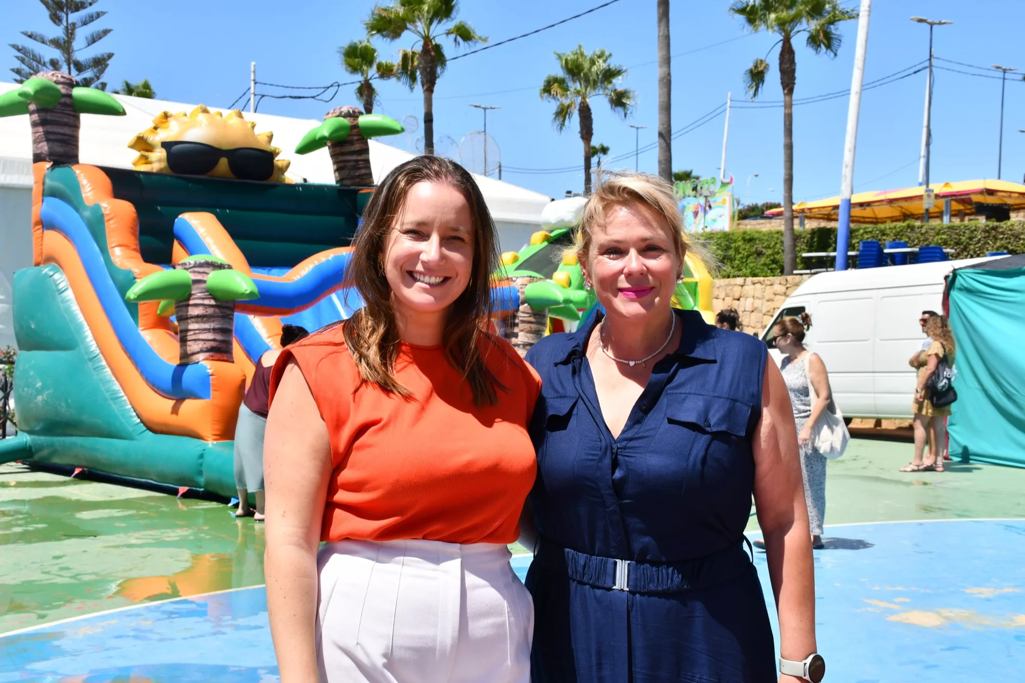 La delegada responsable de la zona del Valle del Guadiaro, Eva Gil, asistió en la mañana de este viernes a la Fiesta Infantil Acuática, incluida en la programación de la feria. Los castillos hinchables con piscinas se encontraban frente a la caseta municipal, al lado de los puestos de Biblioplaya.