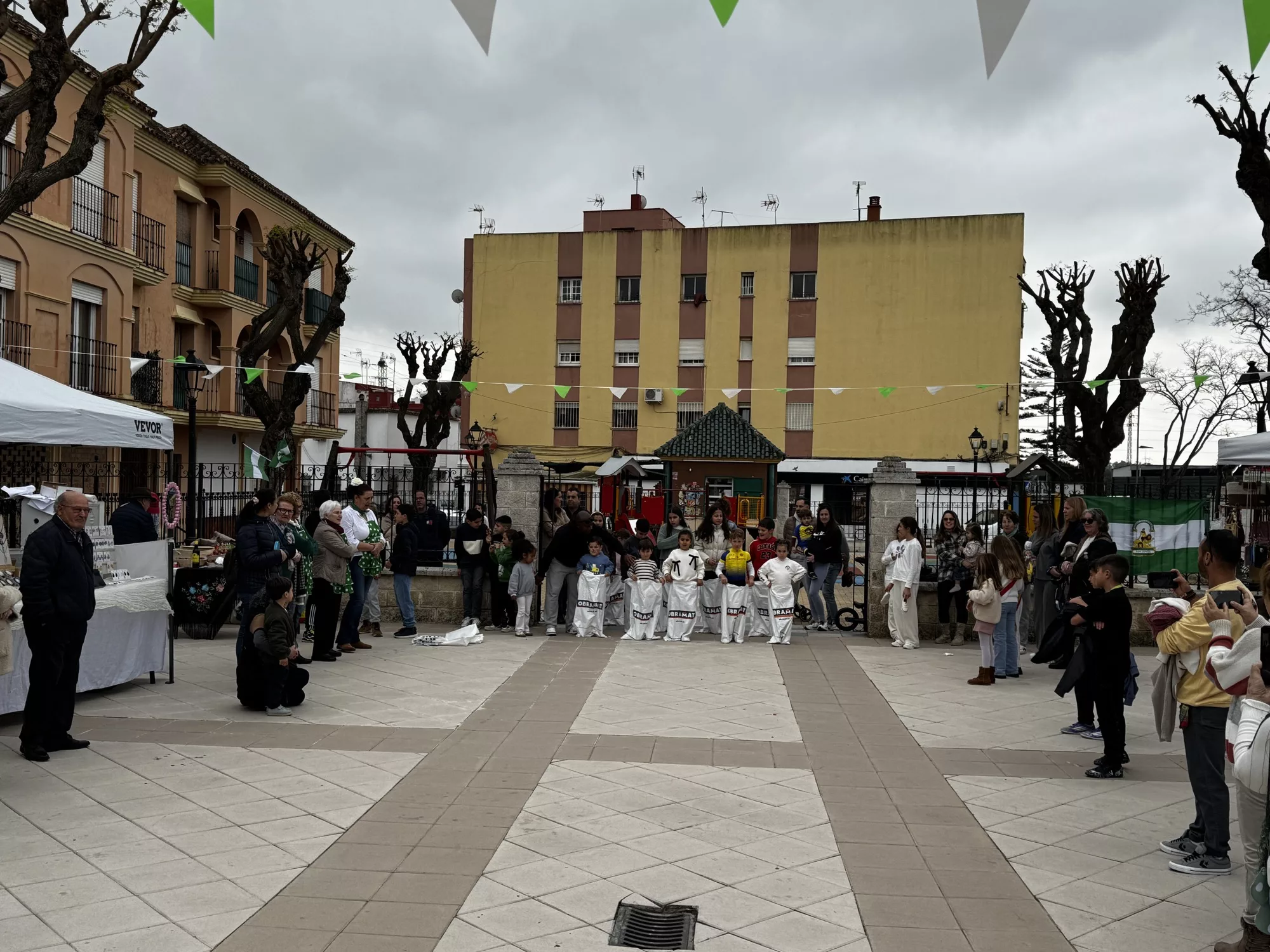 El templete de la Plaza San Bernardo ha sido el epicentro de las actividades conmemorativas de este sábado 28 de febrero, Día de Andalucía en la Estación. A partir del mediodía se contó con actividades para los pequeños, que hasta aproximadamente las 16.00 horas, han contado con atracciones hinchables y pinta caras.