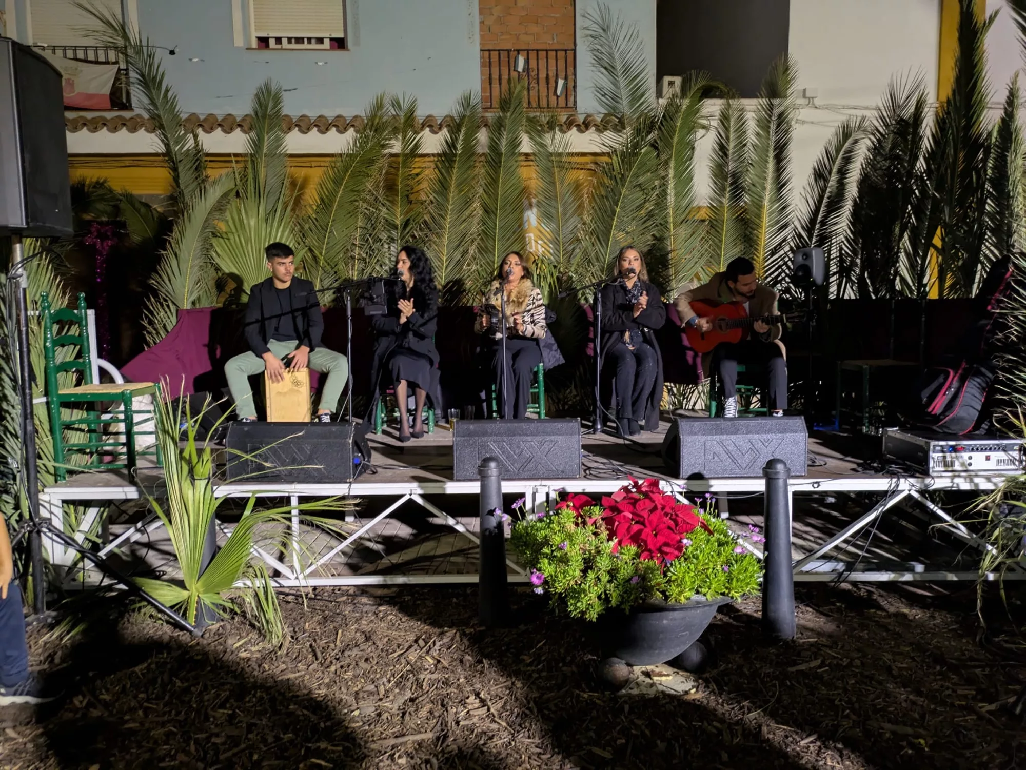 Poco después de la inauguración comenzó la primera de las actuaciones programadas. Se trataba del taller de baile de la Universidad Popular que dirige la monitora Mireia Holgado, que ofreció cuatro pases de sevillanas y otras canciones flamencas con aire navideño. Hay que recordar que a las 20.00 horas está programada la actuación de la zambomba “Jerez por Navidad”, que ofrecerá un repertorio de villancicos flamencos con el genuino sabor jerezano.