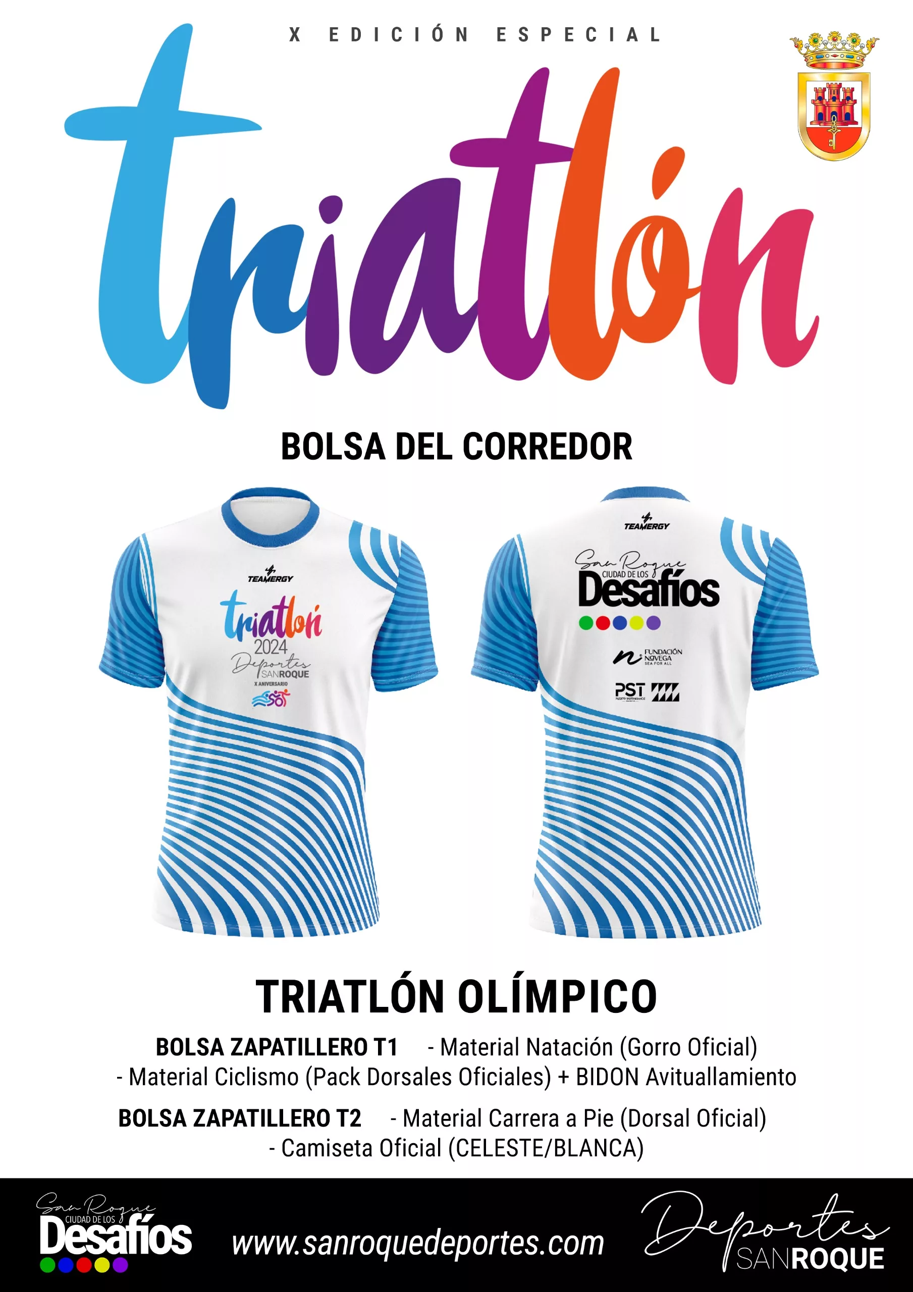 Además, los inscritos en el Triatlón Olímpico recibirán dos bolsas especiales, añadiendo un Bidón de Avituallamiento y una Camiseta Oficial (color Celeste/Blanca).