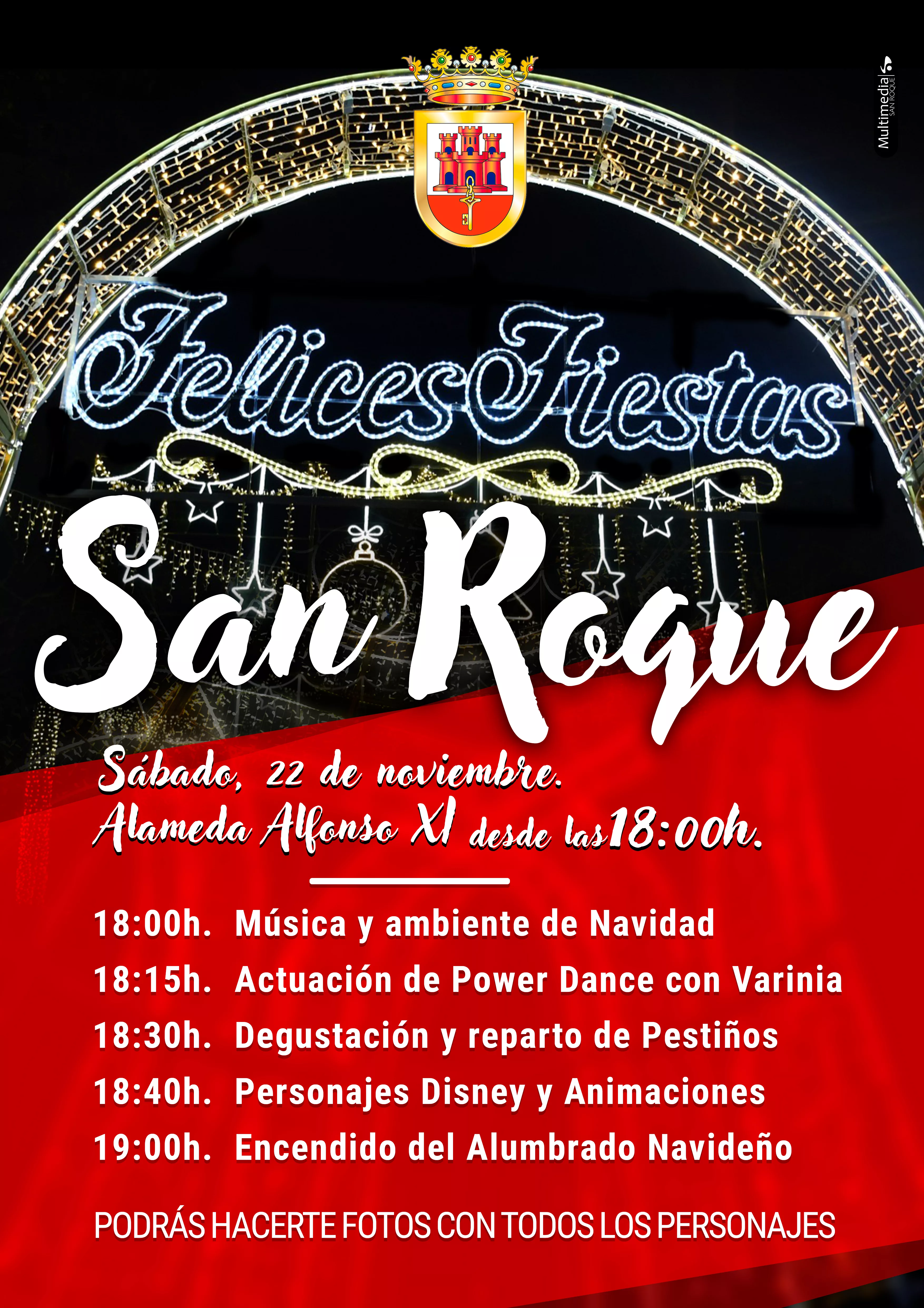 El Ayuntamiento de San Roque, a través de la delegación de Fiestas, ha preparado mañana sábado 22 de noviembre actos para celebrar el inicio de la Navidad, con el encendido del alumbrado extraordinario en todo el municipio.