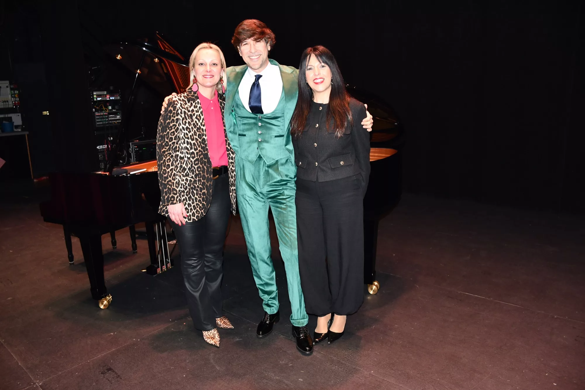 Las tenientes de alcalde, Ana Ruiz, y Belén Jiménez visitaron al artista antes de que diera comienzo el concierto.