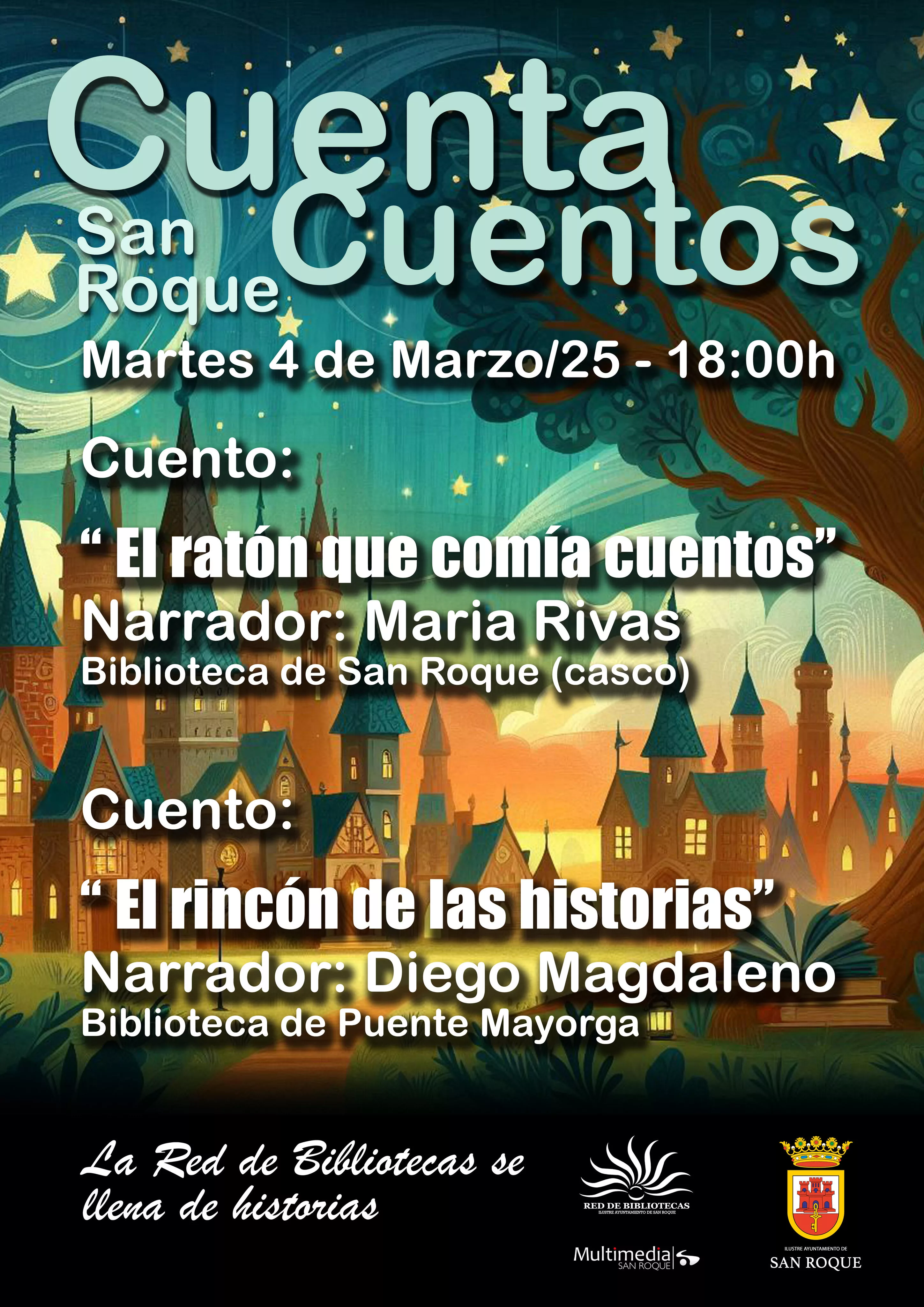 “Cuentos Encuentados” se desarrolla en esta ocasión el primer martes de marzo debido a que el lunes habrá puente festivo para los pequeños, con motivo del Día de Andalucía. Será a las 18.00 horas en su localización habitual, la biblioteca del Edificio Diego Salinas, en San Roque Ciudad, y también en la biblioteca de Puente Mayorga. En la de San Roque, la narradora María Rivas ofrecerá a los niños y niñas la historia de “El ratón que comía cuentos”, mientras que en la biblioteca de Puente, Diego Magdaleno contará a los pequeños “El rincón de las historias”.