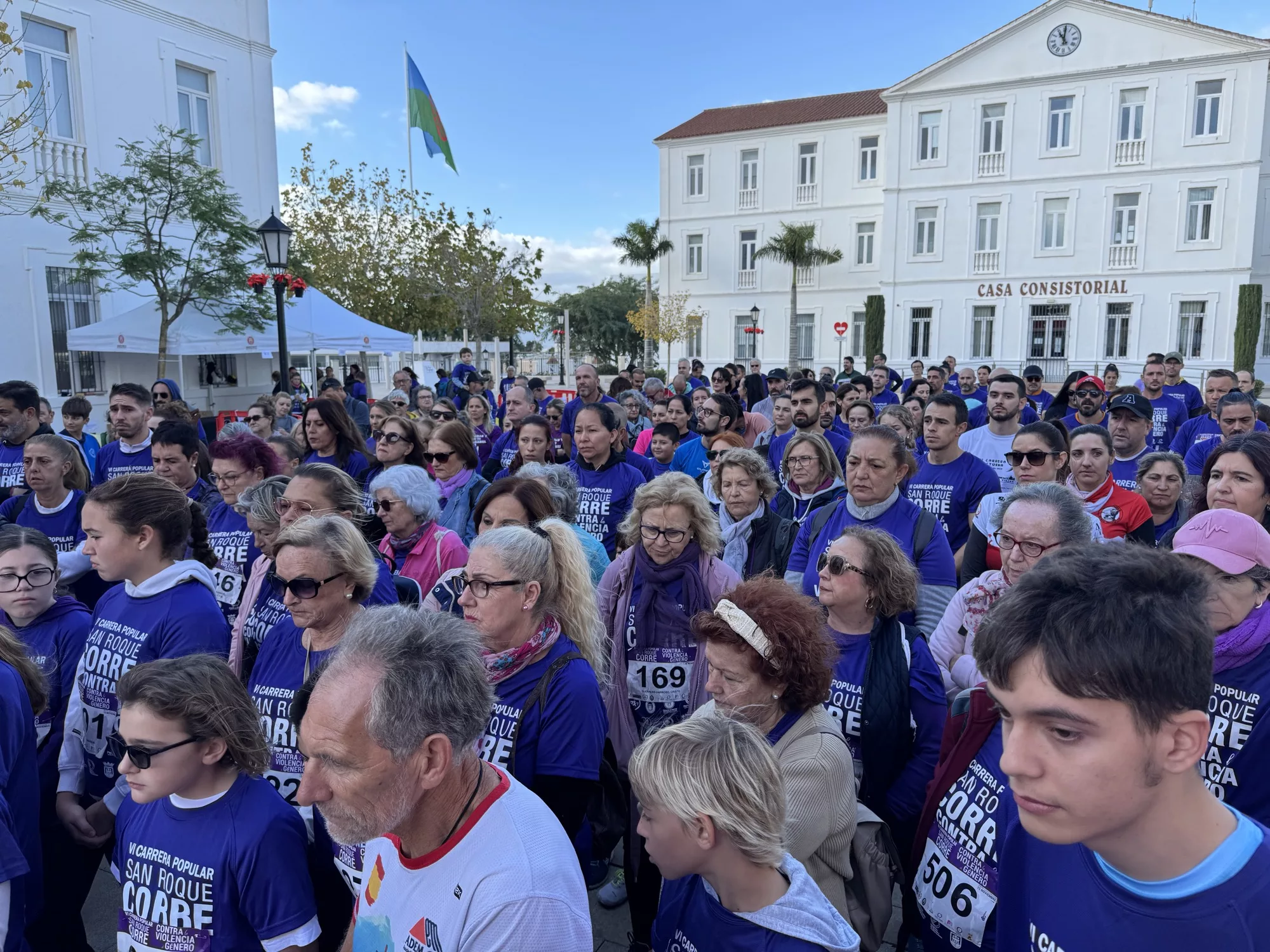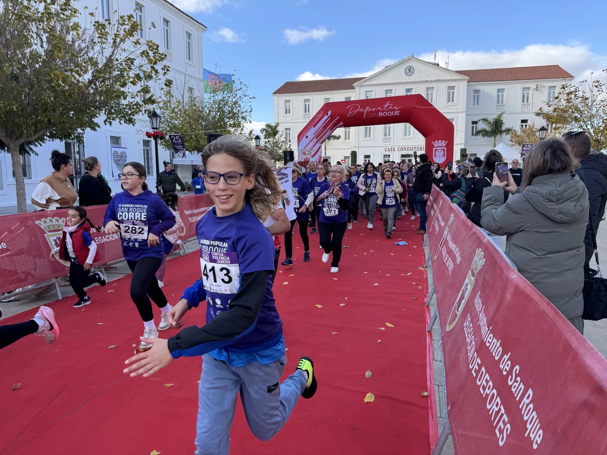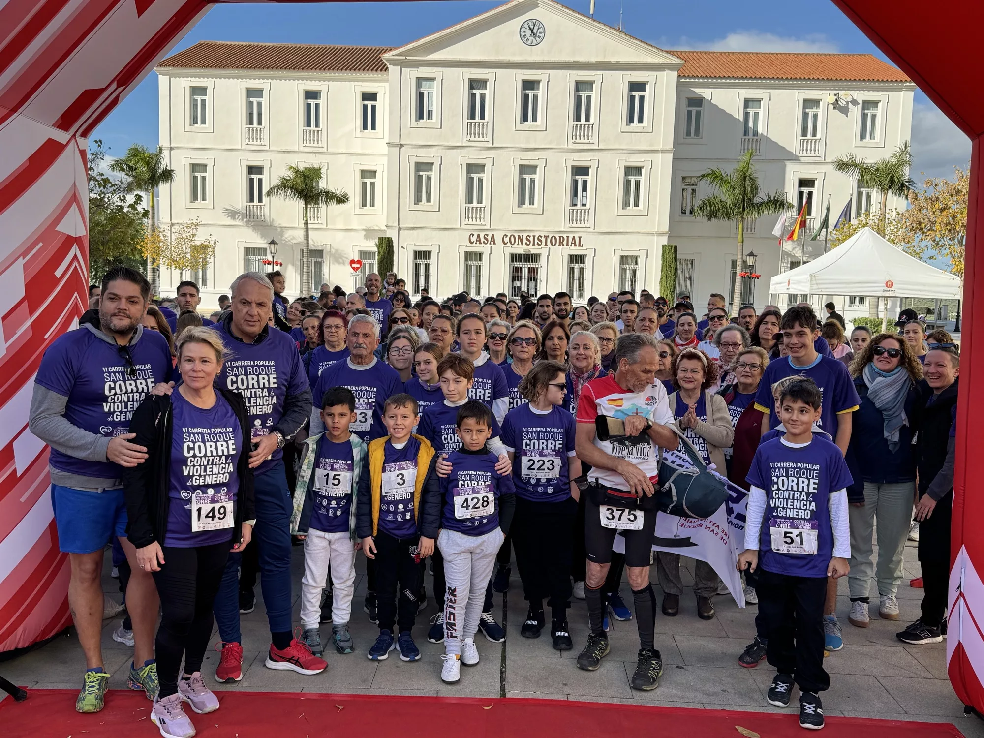 Medio Millar de personas ha participado esta mañana de sábado en la carrera popular “San Roque corre contra la violencia de género”, organizada por la Delegación de Igualdad y Asuntos Sociales con la colaboración de la Delegación de Deportes, Policía Local y Multimedia, una actividad pensada para personas de todas las edades, ya que no tenía carácter competitivo y la inscripción era gratuita.