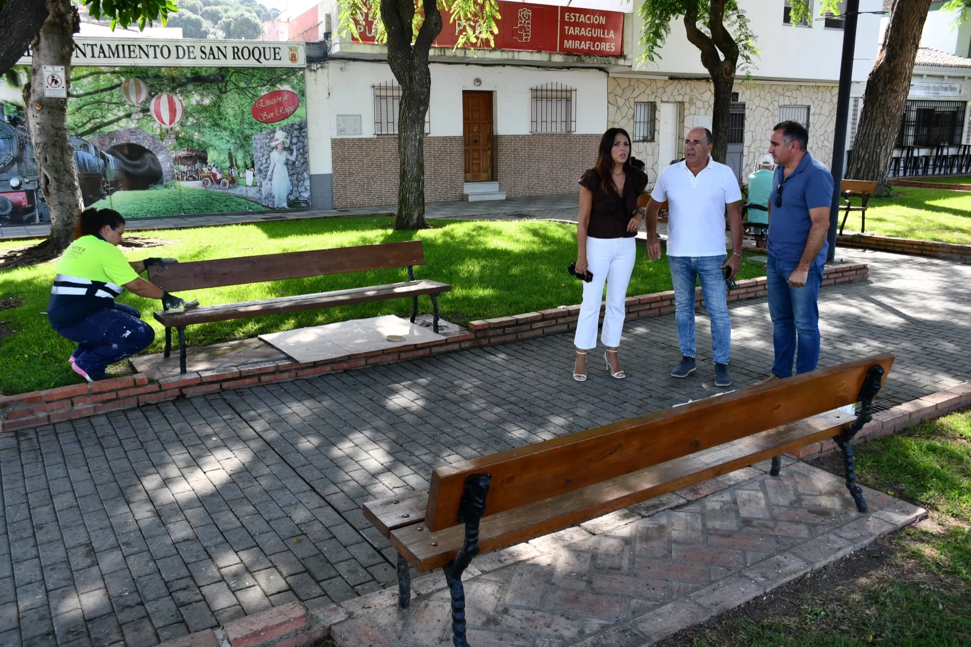 La Delegación de Obras y Servicios está realizando reparaciones en el mobiliario urbano en la Estación de San Roque, como el pintado de bancos y otros elementos de calles y plazas. Esta labor se incluye en la mejora integral que se está acometiendo en esta barriada.