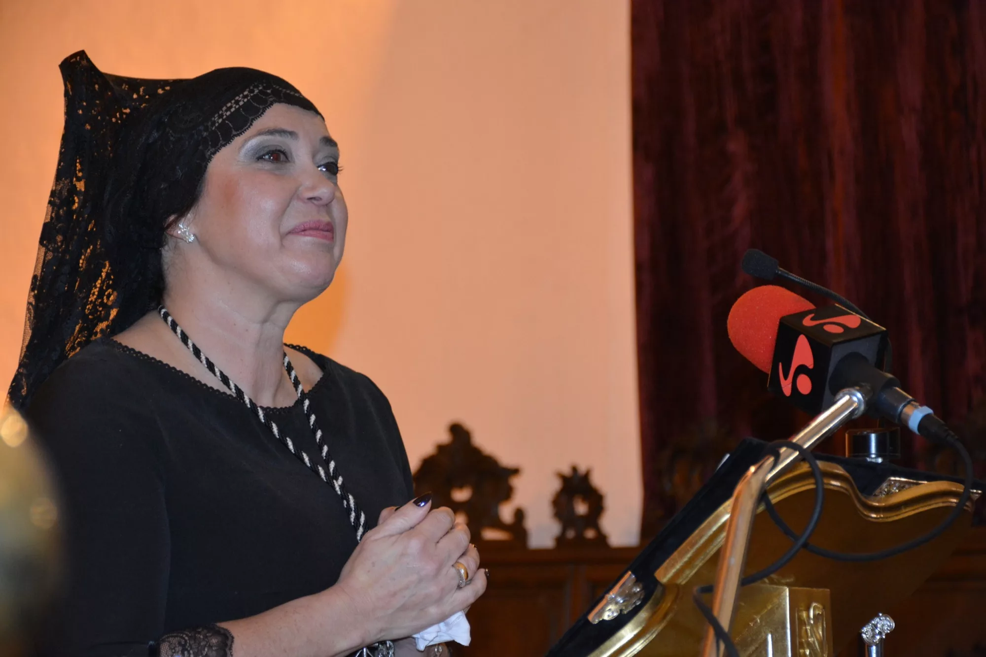Mercedes Caravaca, cofrade de la Hermandad del Cristo de la Buena Muerte y ex presidenta del Consejo Local de Hermandades y Cofradías, fue la encargada de pronunciar el Pregón Oficial de la Semana Santa de San Roque 2018.