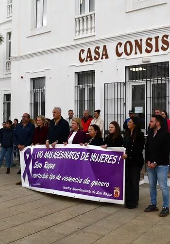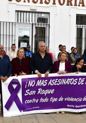 Tras una pancarta con el lema “¡No más asesinatos de mujeres! San Roque contra todo tipo de violencia de género”, en el mediodía de este viernes ha tenido lugar frente a la Casa Consistorial una concentración convocada por el Centro de Información de la Mujer (CIM), que encabezó el alcalde, Juan Carlos Ruiz Boix, junto a la concejal de Igualdad, Eva Gil, y otros ediles. A la misma hora, en Puente Mayorga tenía lugar otra concentración por la misma causa, encabezada por la teniente de alcalde del Arco de la Bahía, Mónica Córdoba.