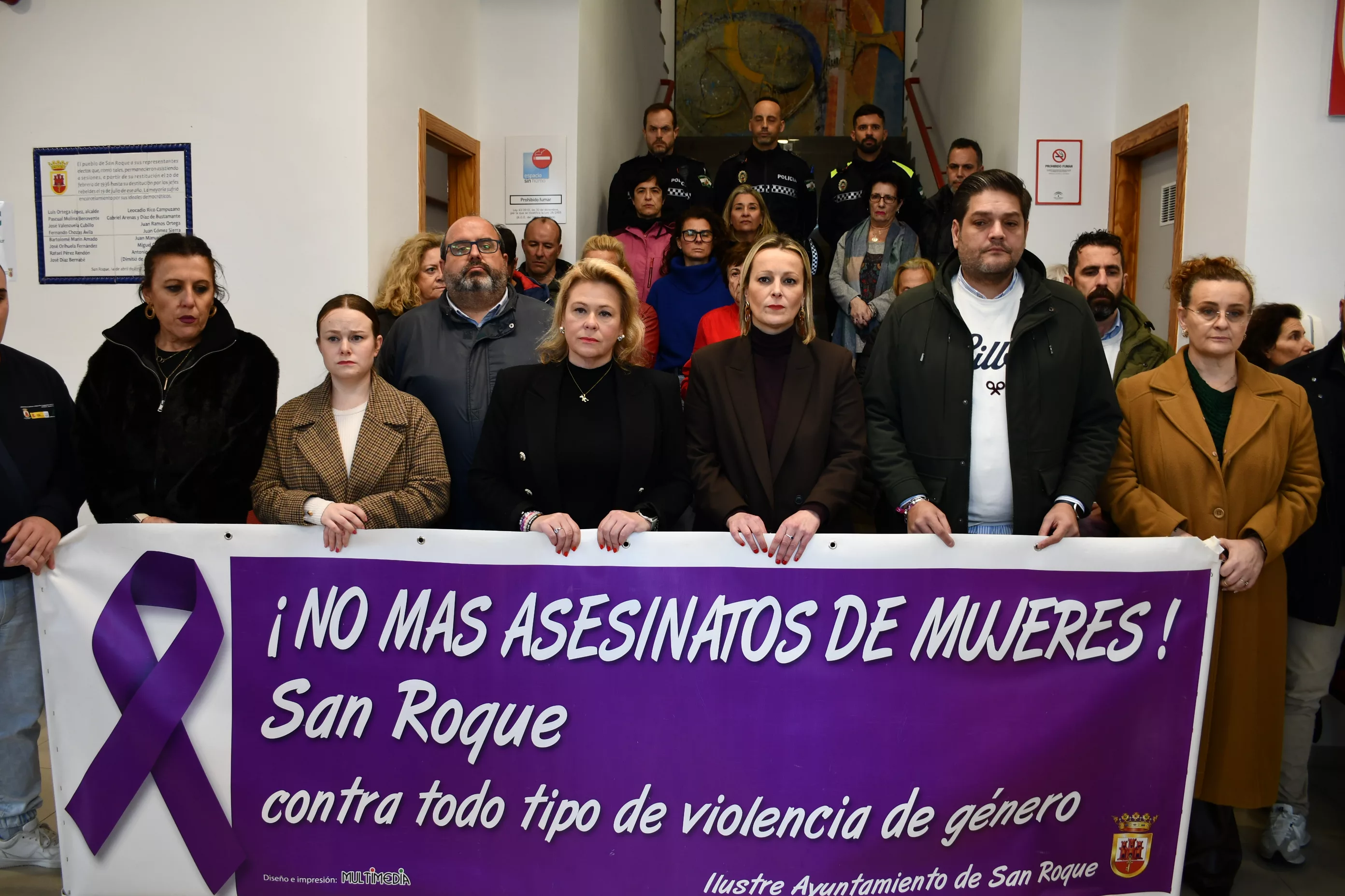 Debido a la alerta amarilla por fuertes vientos en la jornada de este viernes, la protesta se llevó a cabo en el interior de la Casa Consistorial. Esta fue encabezada por una pancarta con el lema “¡No más asesinatos de mujeres! San Roque contra todo tipo de violencia de género”, tras la cual se encontraba la delegada de Igualdad, Eva Gil, y otros ediles.