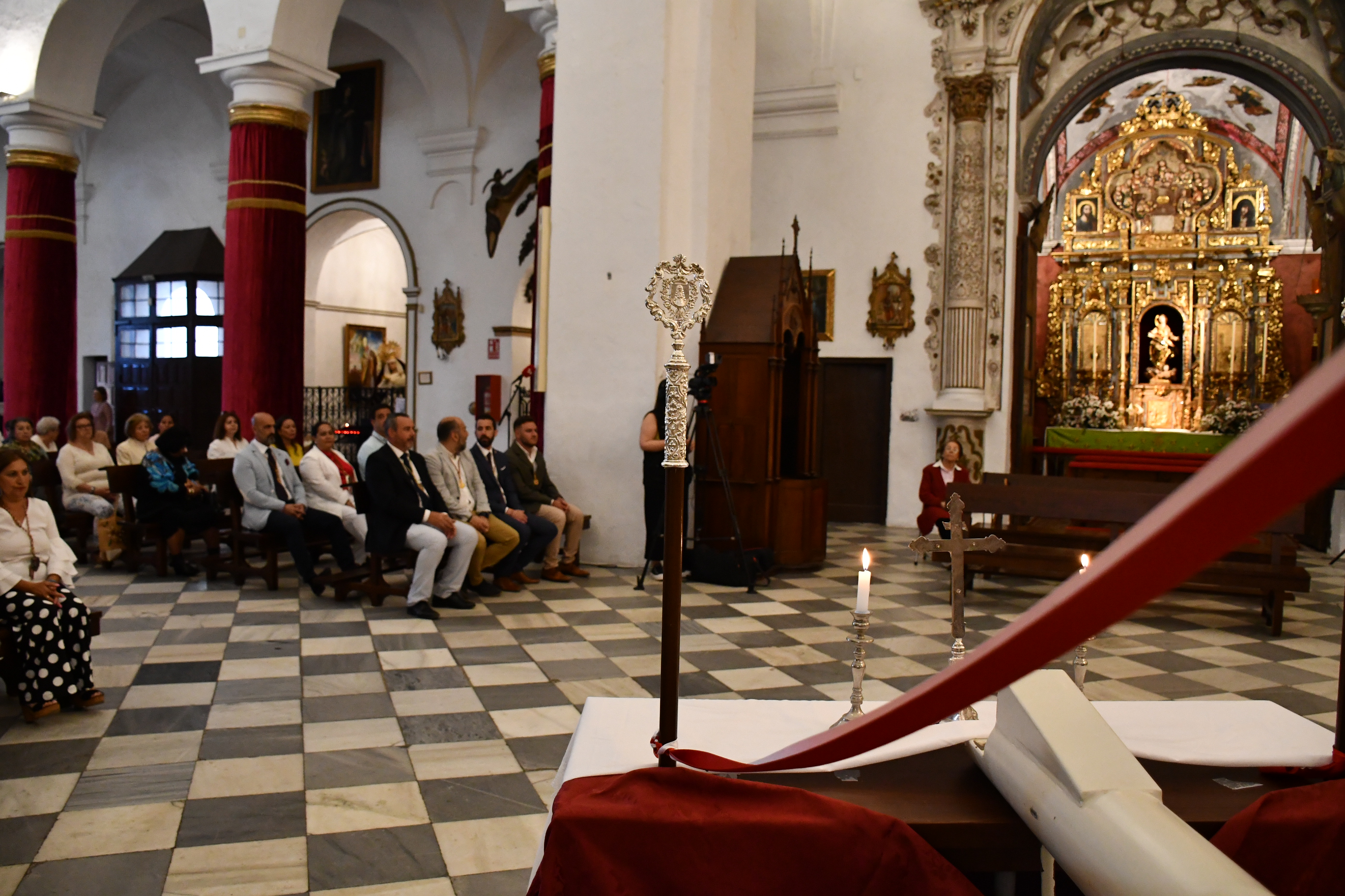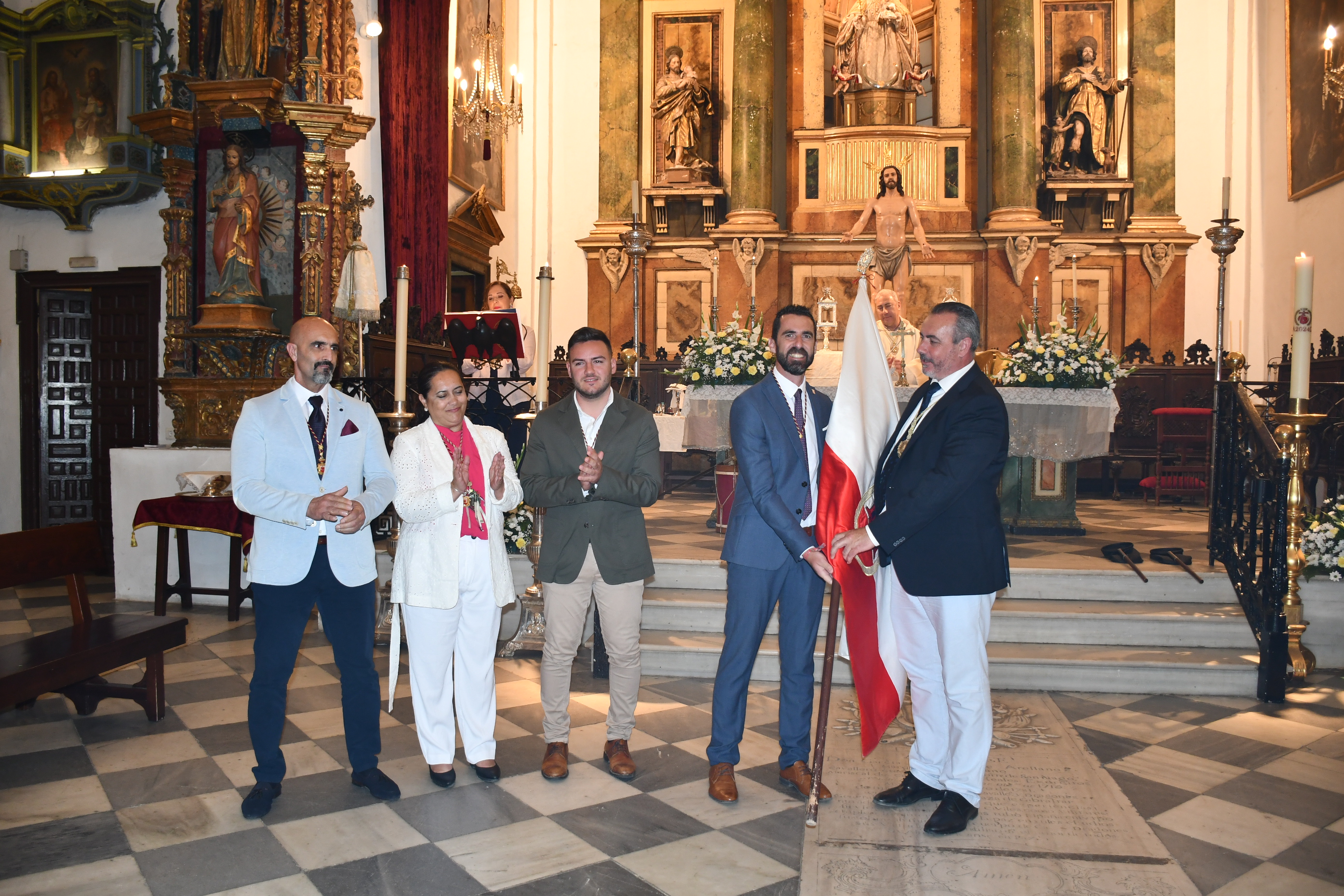 Una vez celebrada la Eucaristía, ediles de la Corporación Municipal hicieron entrega al hermano mayor de la bandera de la Ciudad de San Roque, que será portada por la Hermandad en su camino al Rocío. En la misa, oficiada por el Párroco de Santa María La Coronada, José Manuel Sánchez Cote, participaron, los ediles David Ramos y Fernando Vega, el presidente del Consejo Local de Hermandades y Cofradías, José Luis Perales, el hermano mayor de la Hermandad del Rocío de San Roque, Miguel Ángel Andana, así como otros ediles y miembros de distintas hermandades de San Roque.