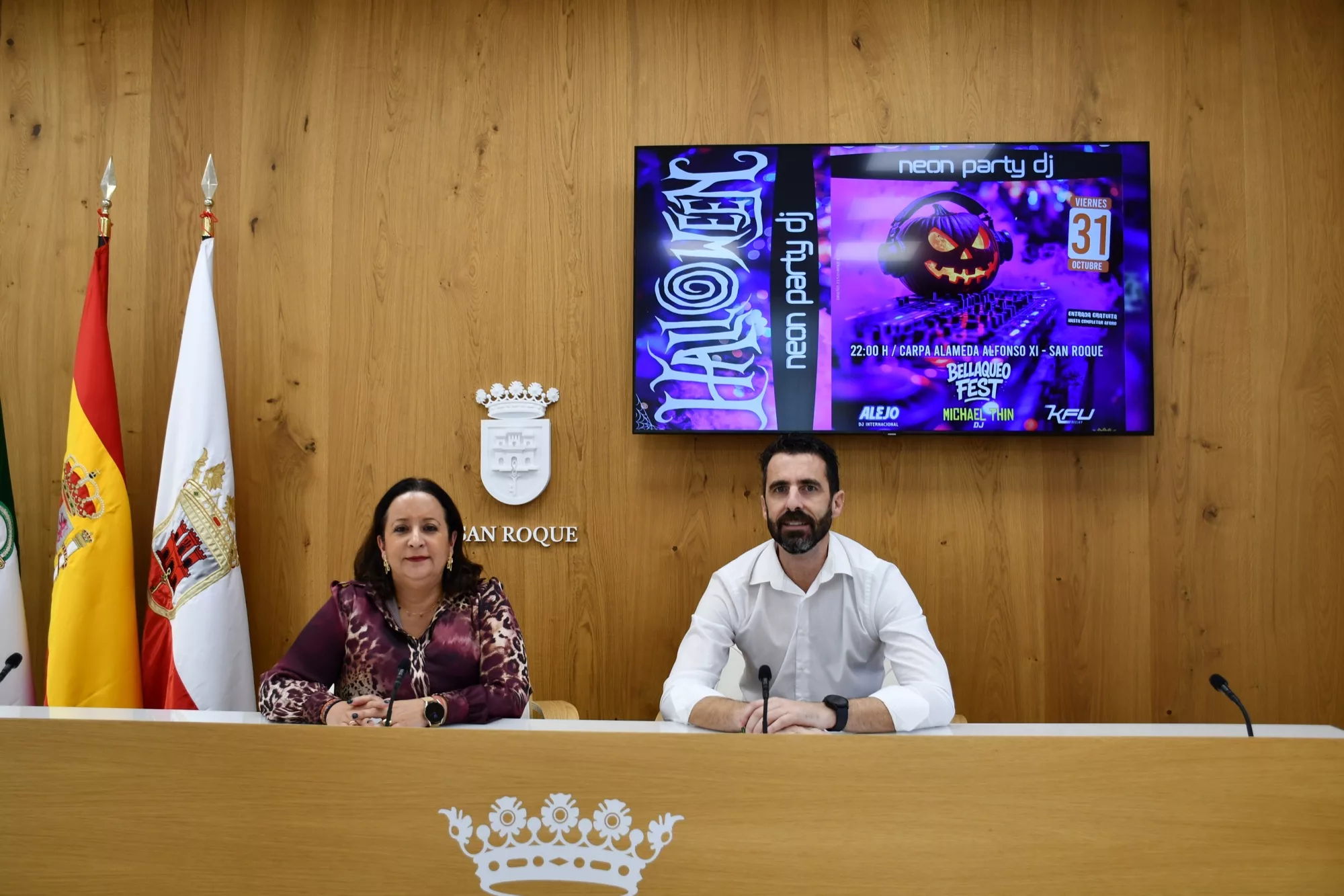 El teniente de alcalde de Juventud, David Ramos, y la primera teniente de alcalde, María del Mar Collado, han presentado la Halloween Neon Party Dj, una fiesta para jóvenes y adolescentes que tendrá lugar el próximo 31 de octubre en la carpa de la Alameda Alfonso XI a partir de las 22.00 horas. Los asistentes podrán disfrutar del Bellaqueo Fest, con la música del Dj internacional Alejo y de los sanroqueños Michael Thin y KFU. La entrada será gratuita hasta cubrir aforo.