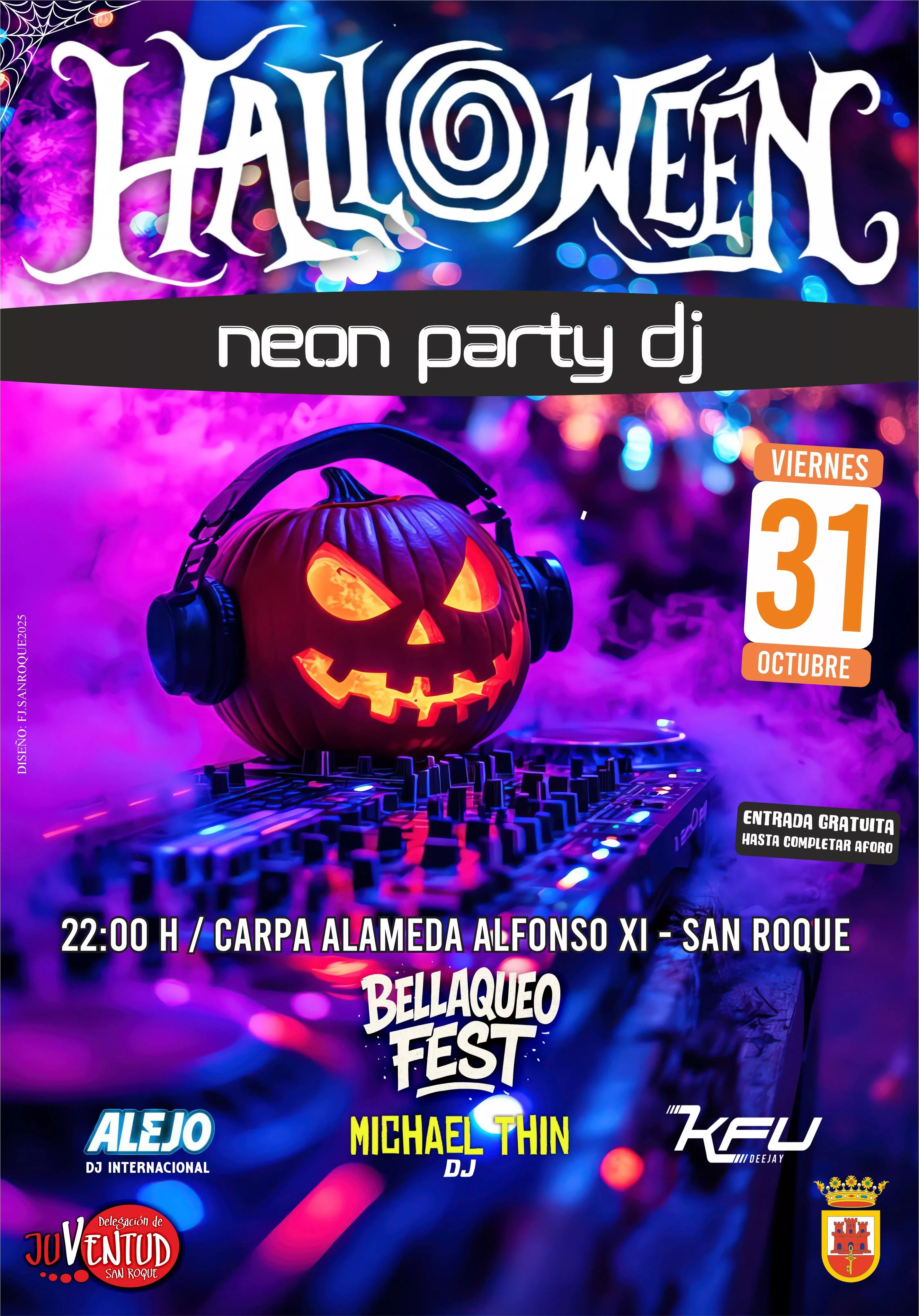 La Neon Party es una experiencia de baile, diversión y mucho color que se ha celebrado por segundo año consecutivo en San Roque. A la música se suma un ambiente lleno de colores fluorescentes, del cual el público forma parte fundamental, ya que se trata de ir disfrazado como personajes de terror o, al menos, vestido con ropas de colores llamativos.